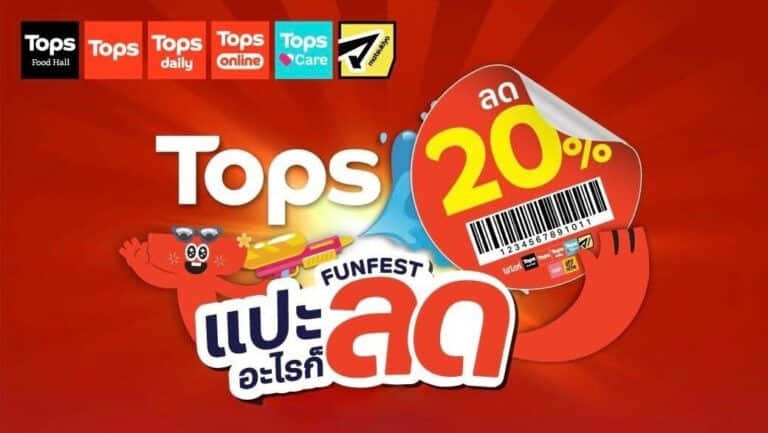 - บัตรกำนัลแทนเงินสด (Tops E-Voucher) นี้ สามารถใช้ร่วมกับโปรโมชัน ‘Tops Fun Fest Promotion – สติกเกอร์แปะอะไรก็ลด’ ระหว่างวันที่ 18 มีนาคม 2569 – 30 เมษายน 2569 รายละเอียดเพิ่มเติม คลิก