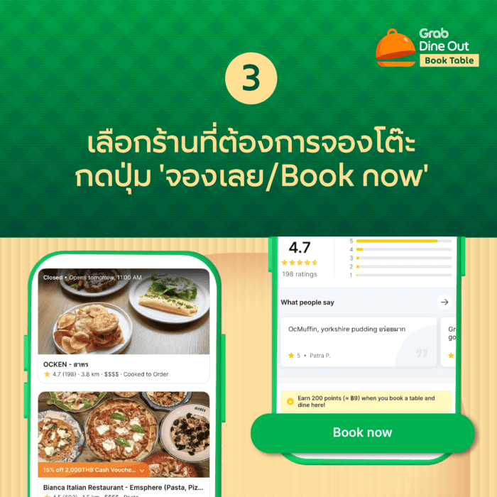 💚 Grab Dine Out พาส่องวิธีจองโต๊ะกินที่ร้านง่ายๆ ใน 4 ขั้นตอน