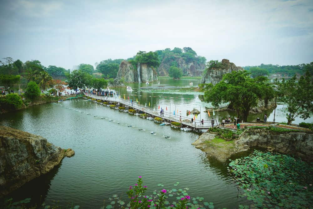 Buu Long Tourist Area is often nicknamed the “miniature Ha Long Bay” of the south, thanks to its stunning limestone mountains rising from tranquil lakes just a short drive from Bien Hoa city center. This scenic park blends natural beauty with cultural attractions—wander along lakeside paths, rent a paddleboat, or take in panoramic views from the hilltop pagoda. The peaceful ambiance here offers a refreshing escape from city life, while manicured gardens and quirky photo spots make it a favorite with both families and couples.
