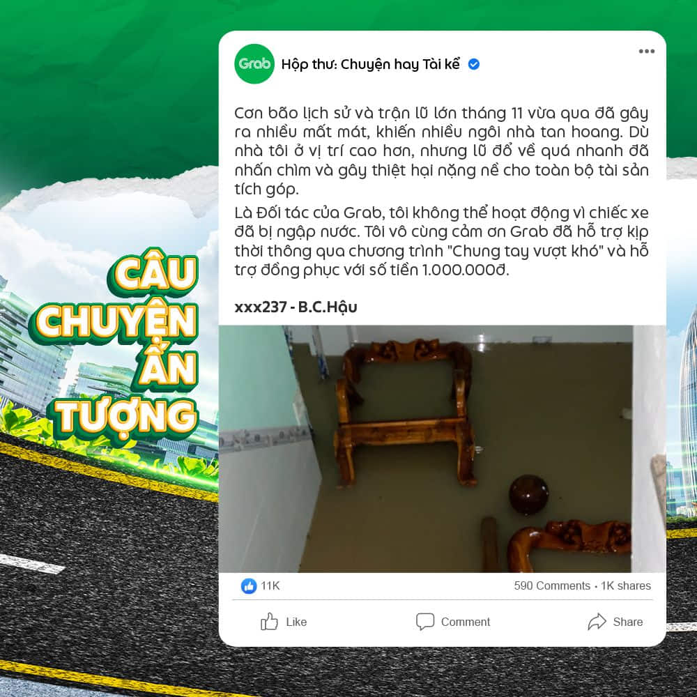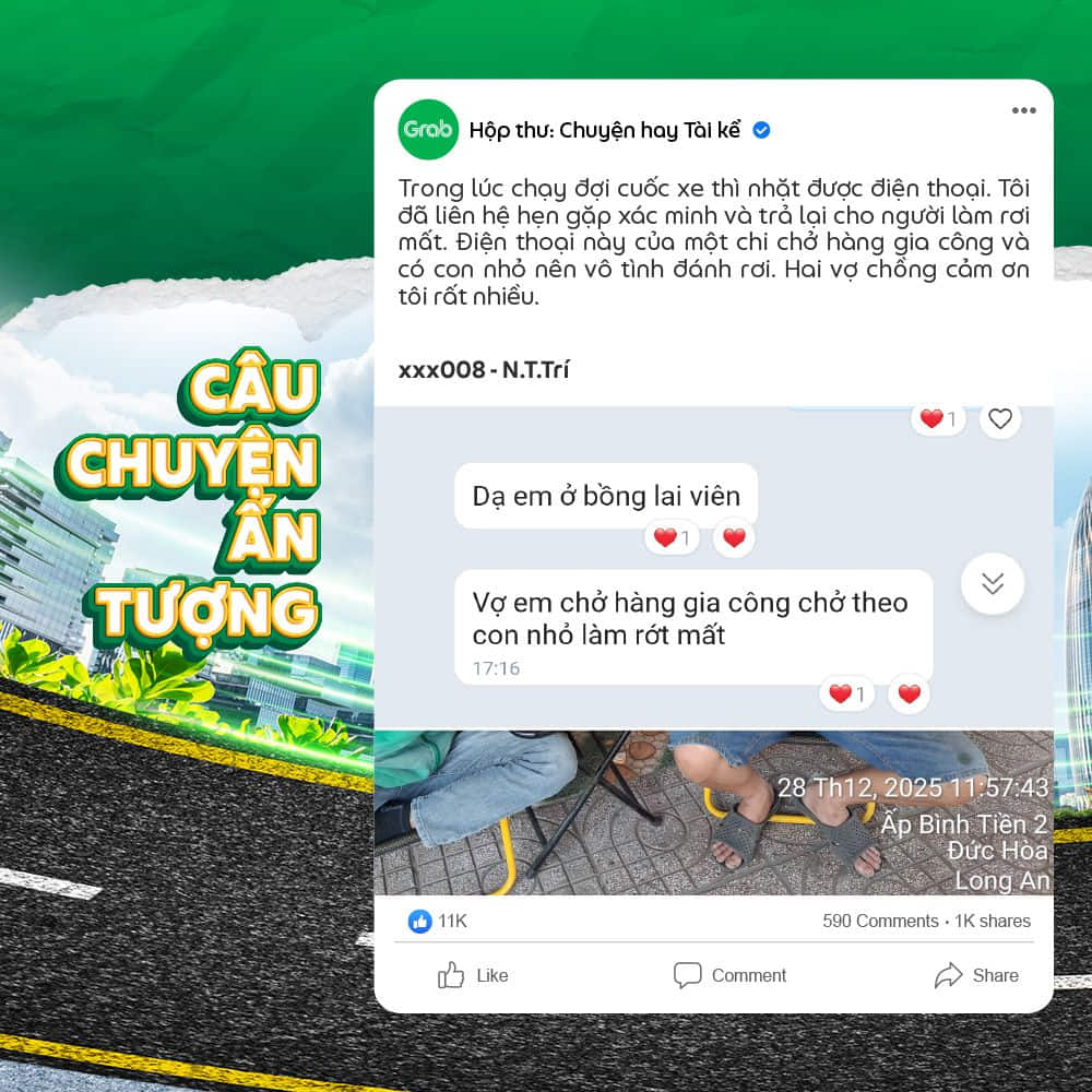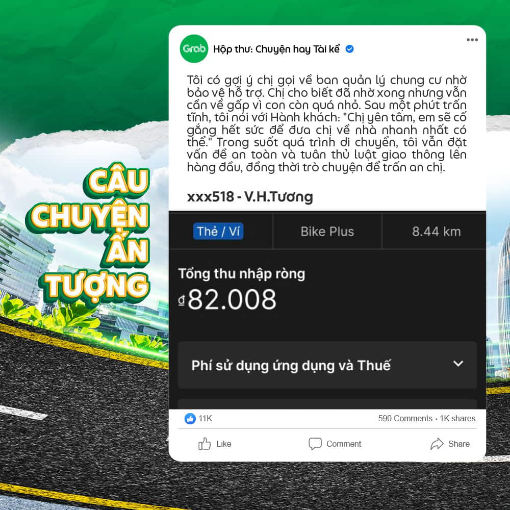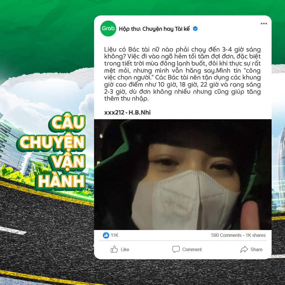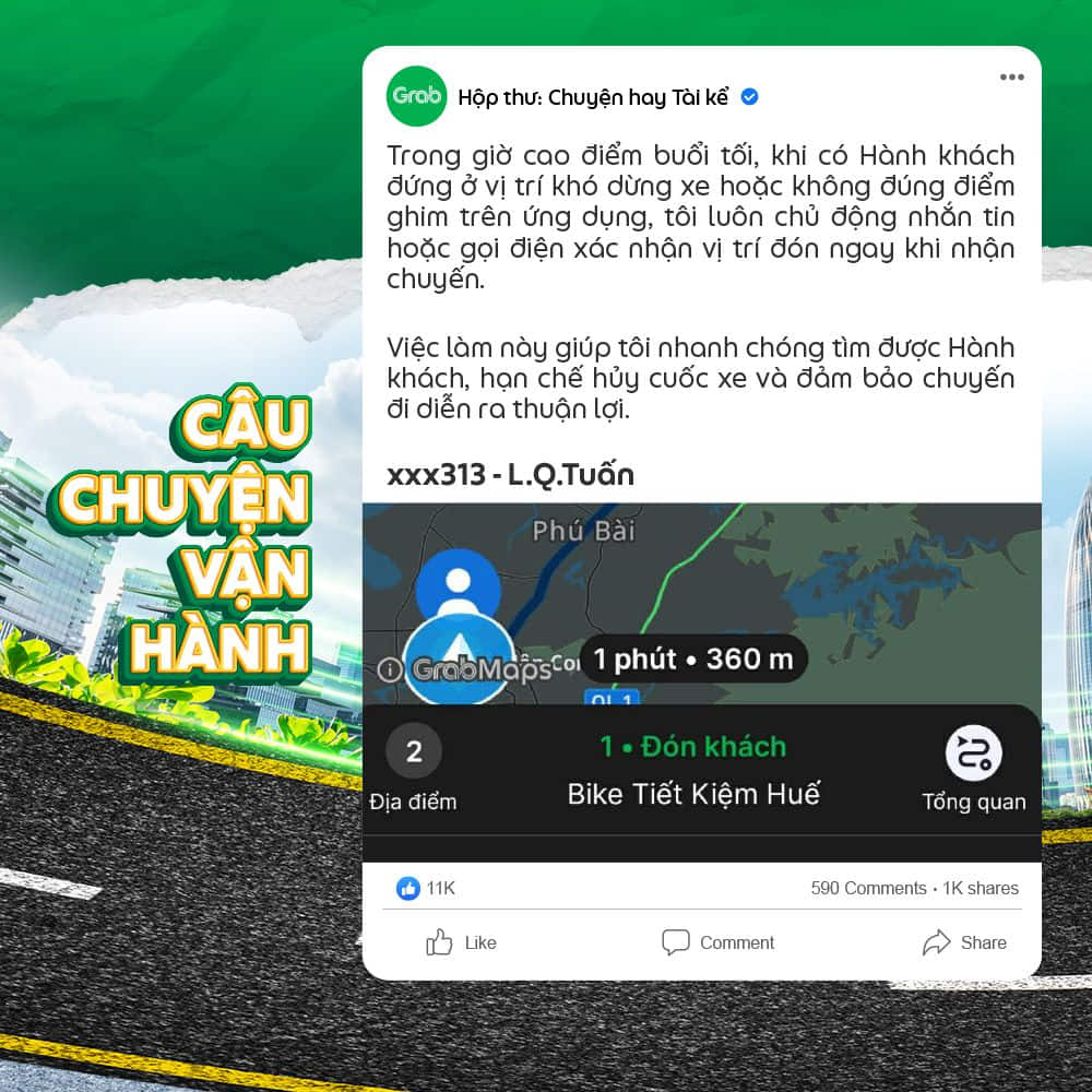 Các thông tin từ câu chuyện mà Đối tác gửi đến Grab có thể sẽ được thu thập cho mục đích cải thiện dịch vụ và các Chương trình gắn kết dành cho Đối tác Tài xế.
