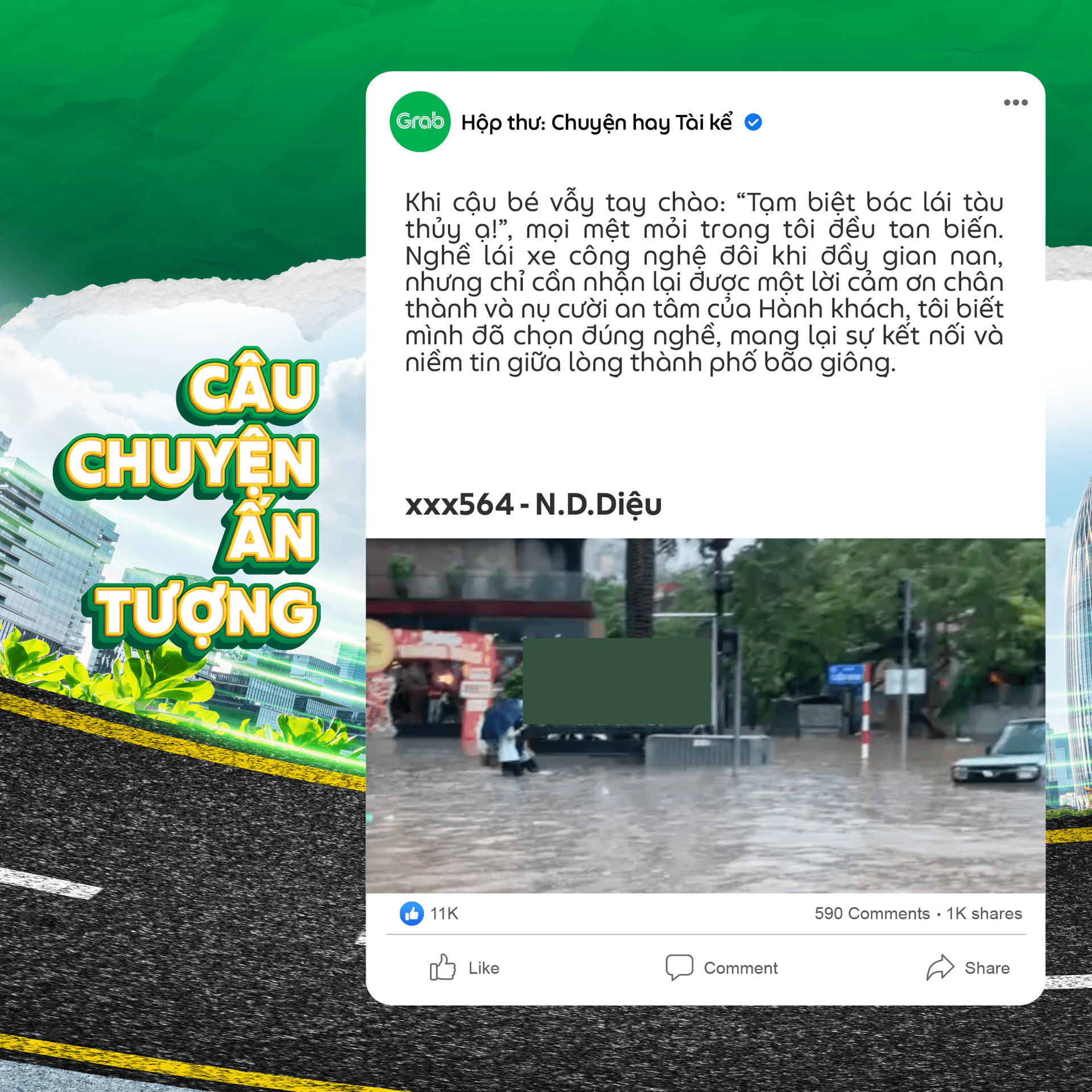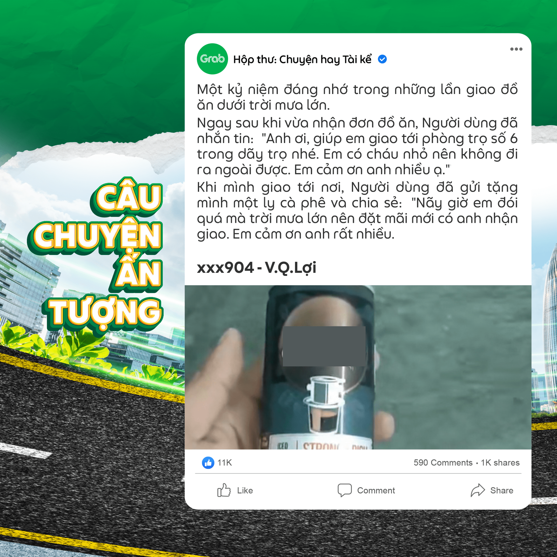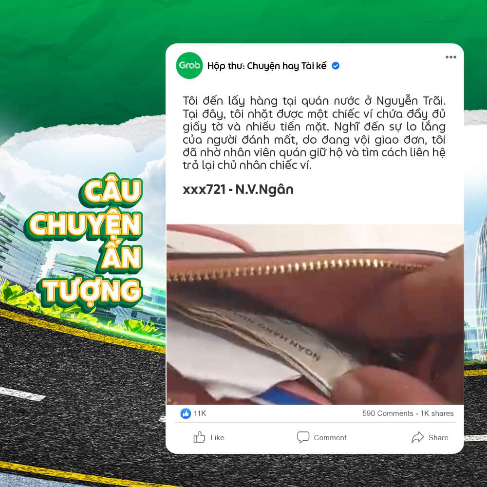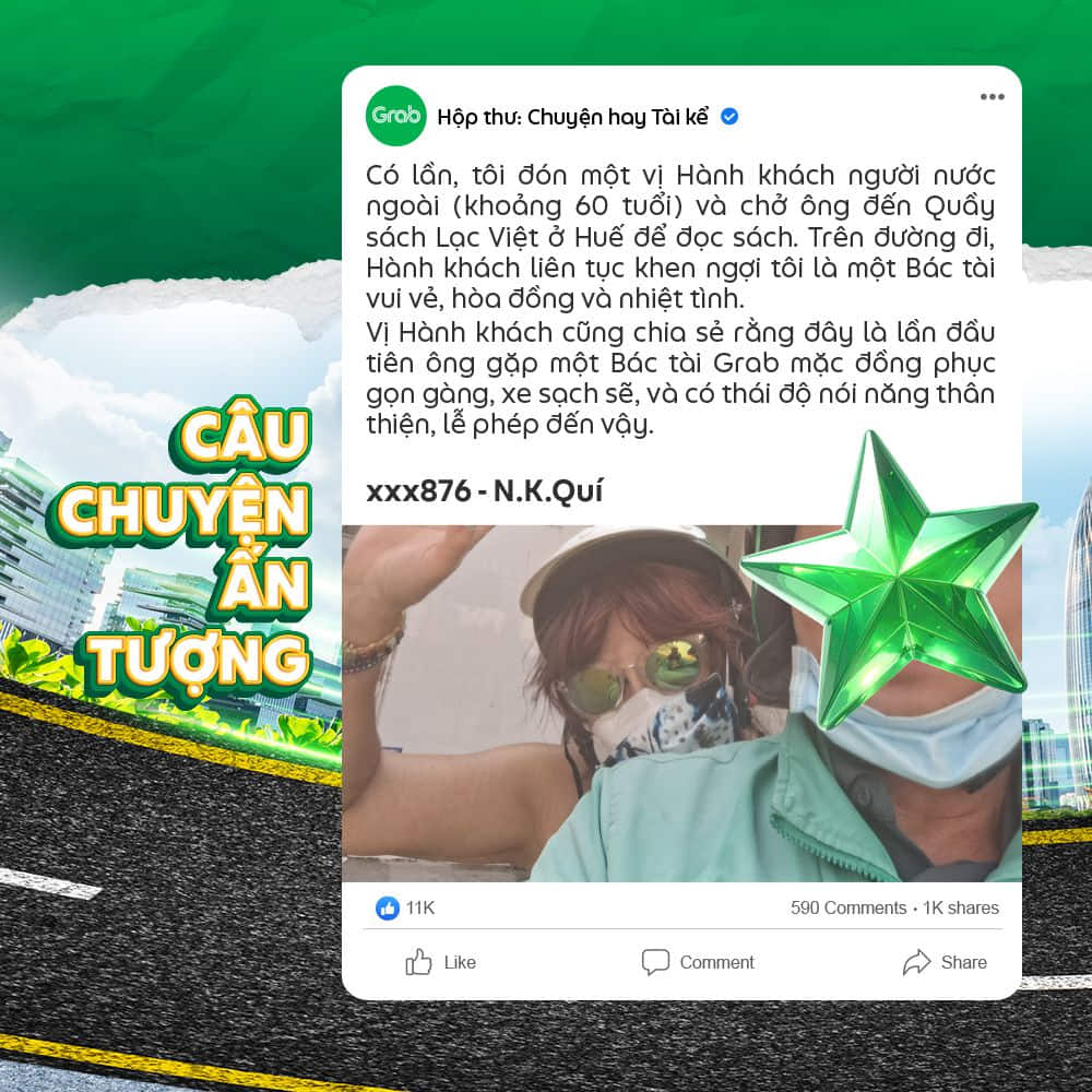👉 Trong trường hợp các câu chuyện mà Đối tác gửi về có hình ảnh liên quan quá nhiều đến bên thứ 3 (hình cận mặt, địa chỉ, thông tin cá nhân,…) Grab sẽ ghi nhận và thay thế bằng hình minh họa khác.