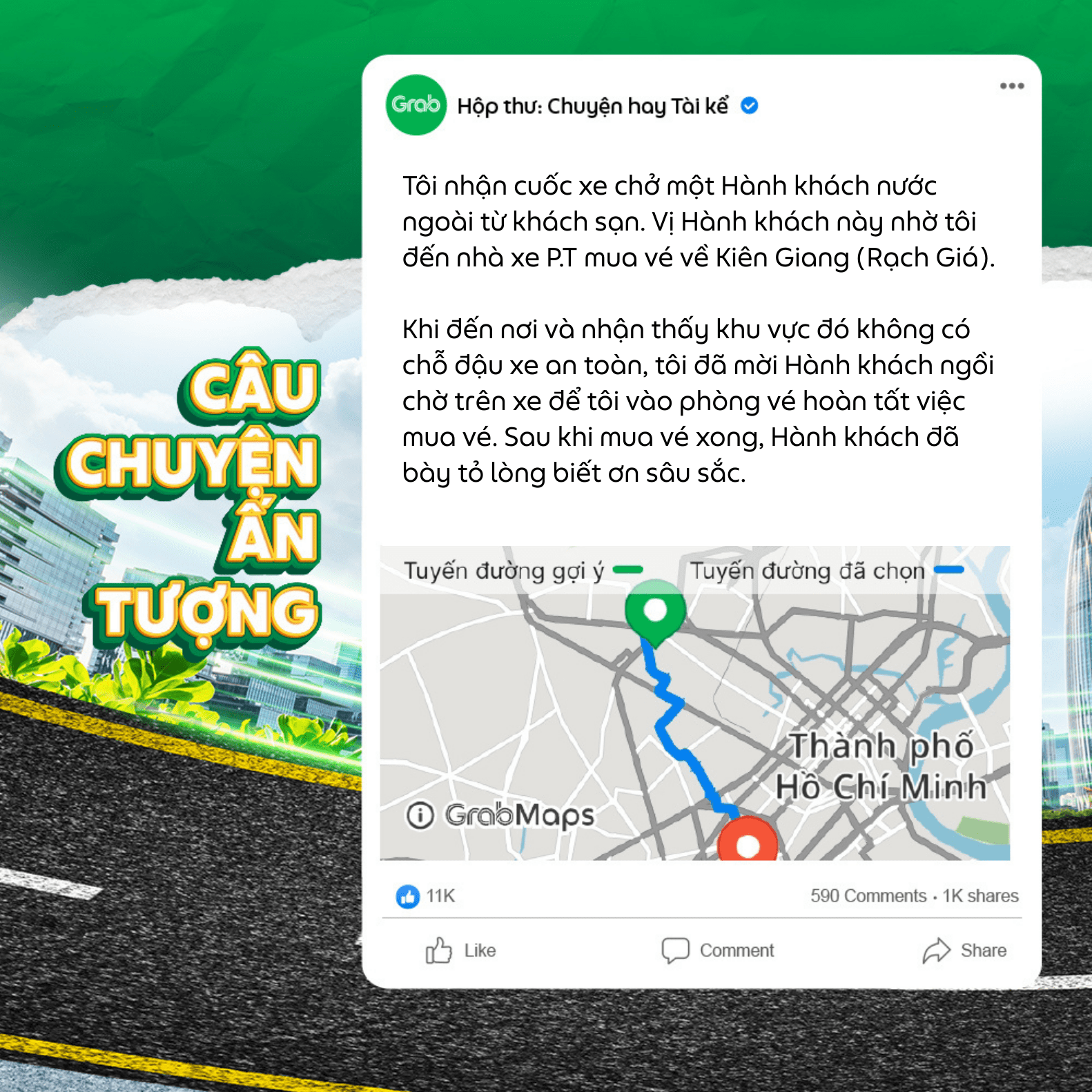 Tôi cảm ơn Grab đã kết nối và cảm ơn Hành khách đã trao cơ hội cho tôi được hỗ trợ trong lúc chị cần nhất.