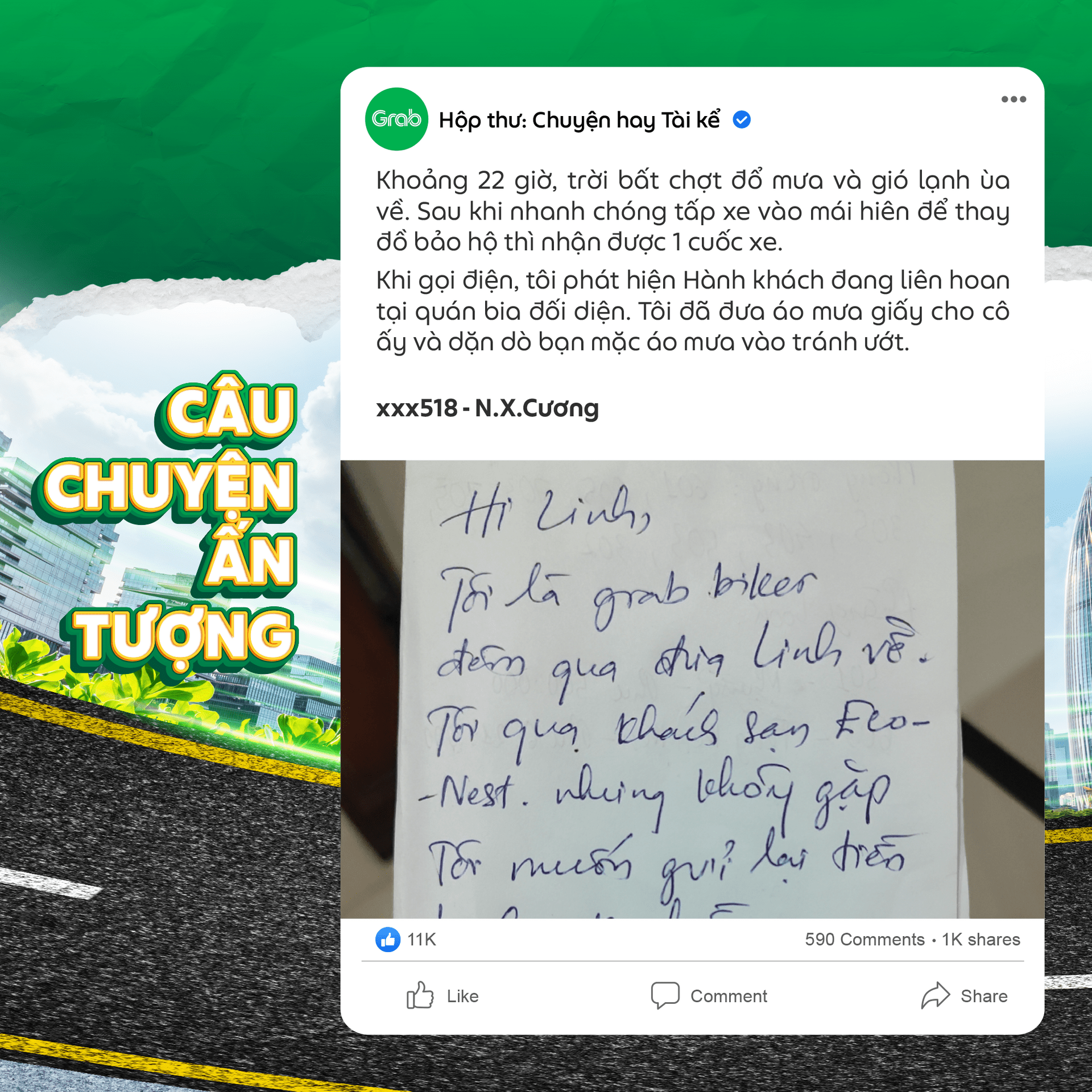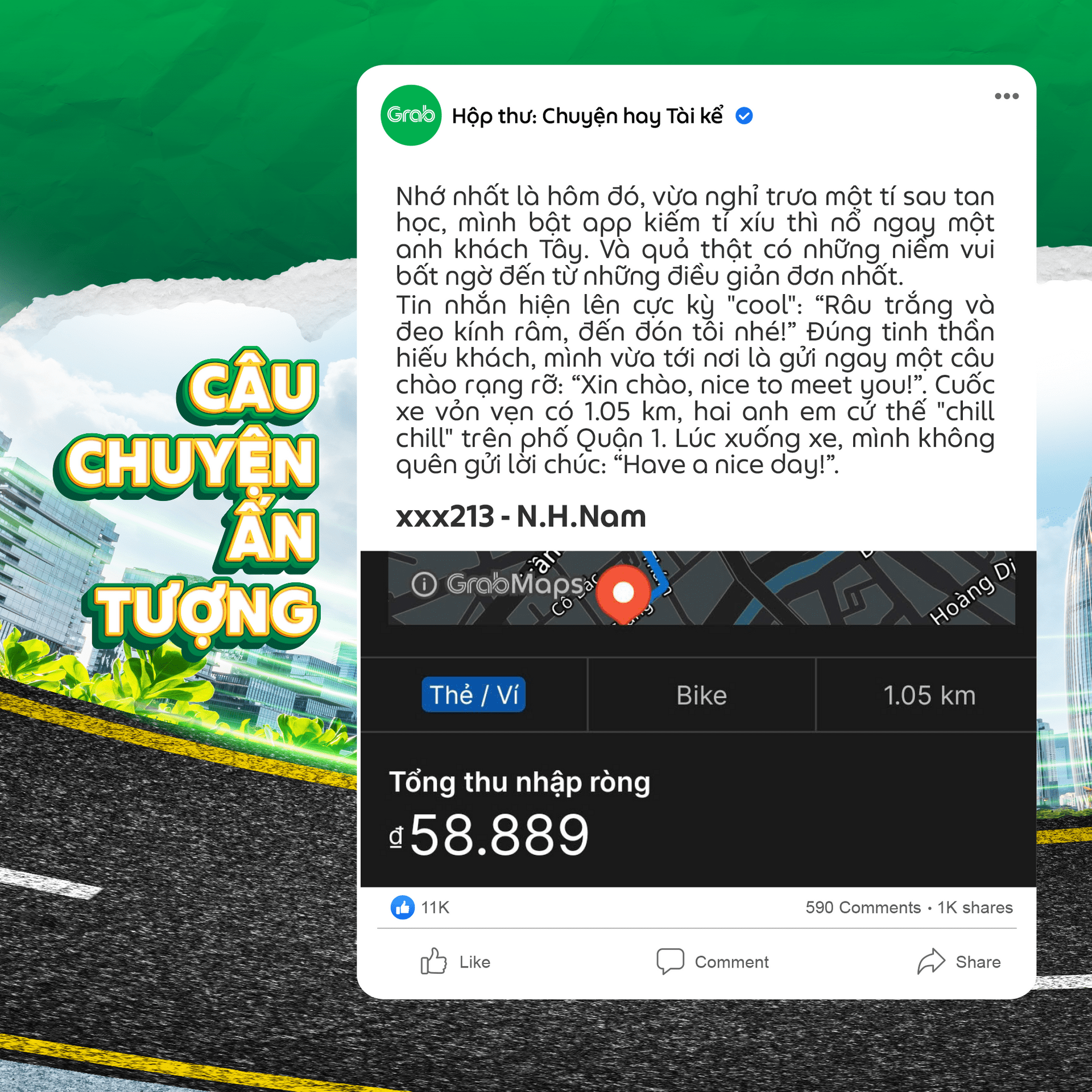 “Là một bác tài Grab, tôi đã chở hàng ngàn người, đi qua biết bao con đường, ngõ phố. Nhưng có một chuyến xe sau ngày mà tôi sẽ không bao giờ quên.