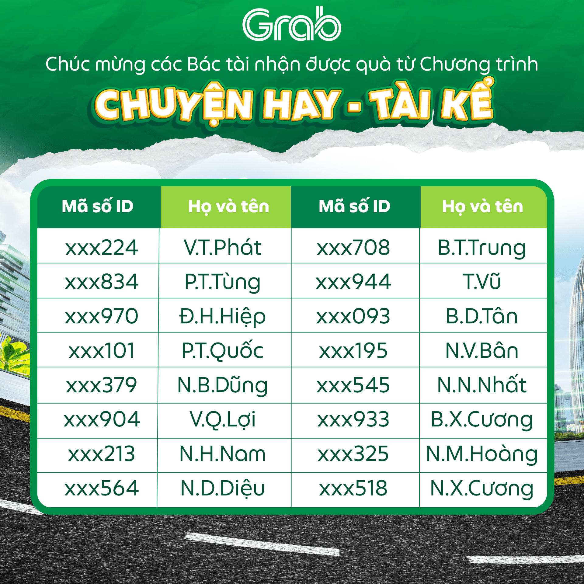 Hy vọng thông qua Chương trình: Chuyện hay – Tài kể sẽ giúp những câu chuyện của Đối tác được lan tỏa đến cộng đồng tài xế công nghệ và hơn thế nữa! Cùng nhau vẽ nên bản đồ văn hoá Grab đầy màu sắc và nhân văn thông qua những câu chuyện chân thực từ chính các Đối tác.