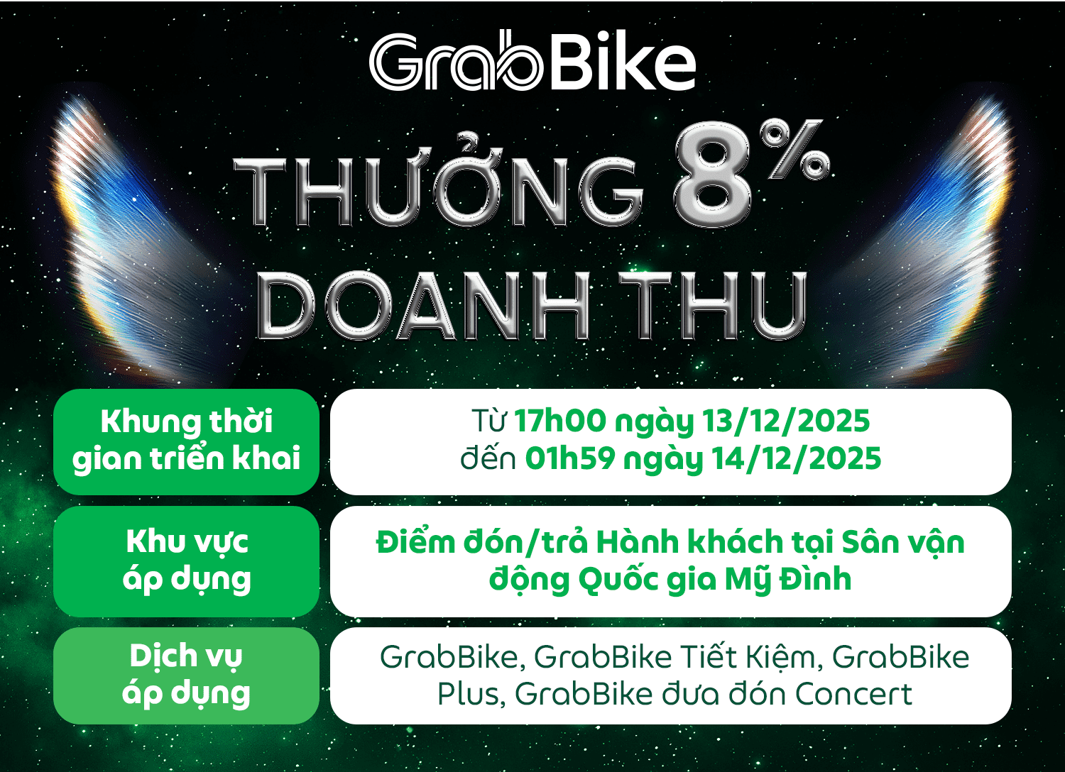 Ngày 13-14/12/2025, Grab mang đến chuỗi 03 chương trình thưởng đặc biệt – quá dễ để bắt lấy cơ hội gia tăng thu nhập.