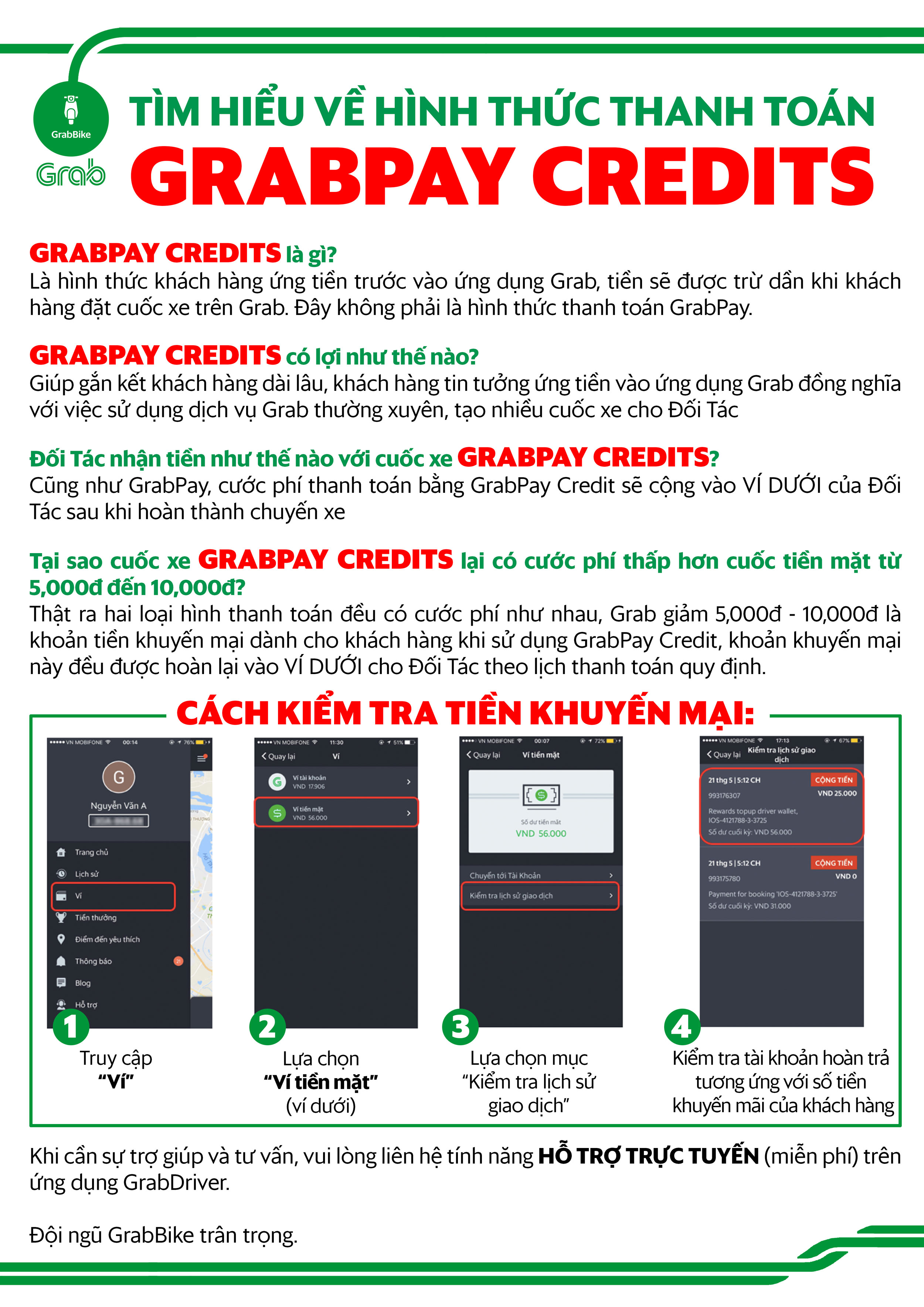 [GRABBIKE] TÌM HIỂU VỀ HÌNH THỨC THANH TOÁN GRABPAY CREDITS