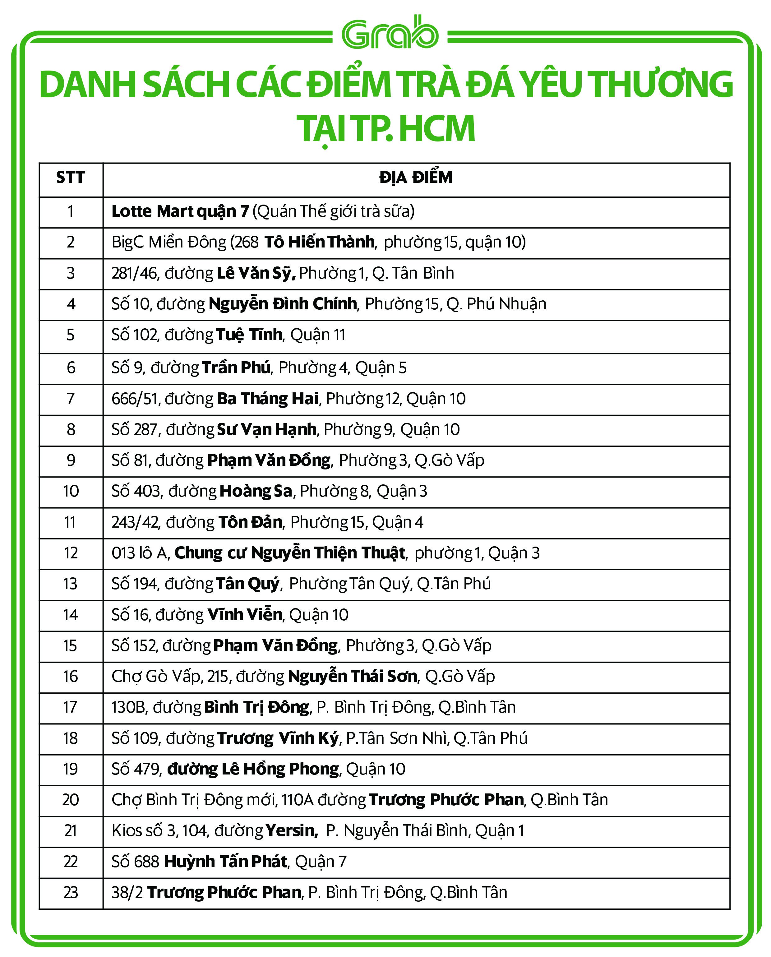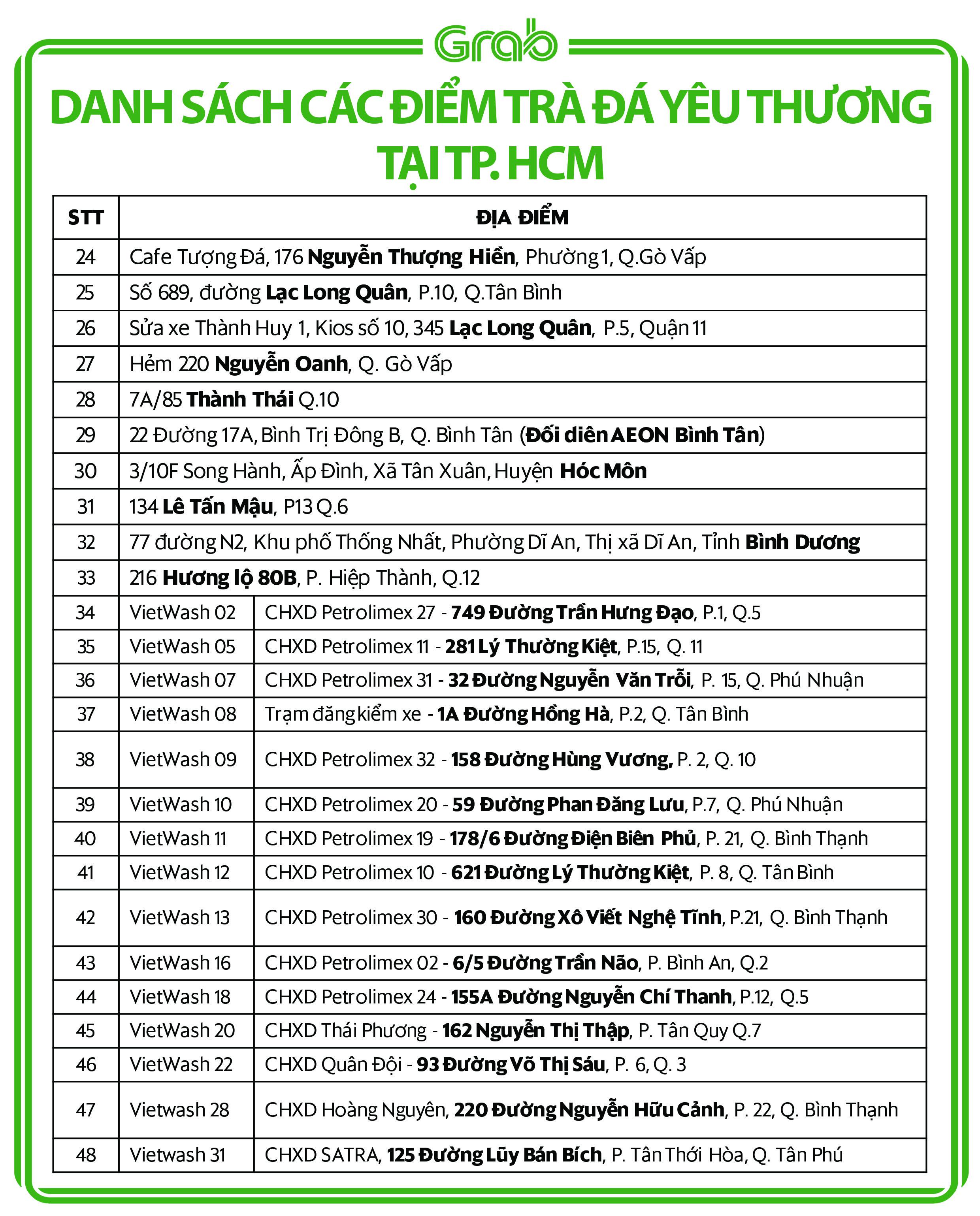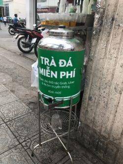 Những bình trà đá mát lạnh, đảm bảo chất lượng vệ sinh được đặt khắp nơi trong thành phố với mong muốn tiếp nước cho các Đối Tác GrabBike cũng như mọi người có nhu cầu sử dụng dưới thời tiết nắng nóng, khô hanh.