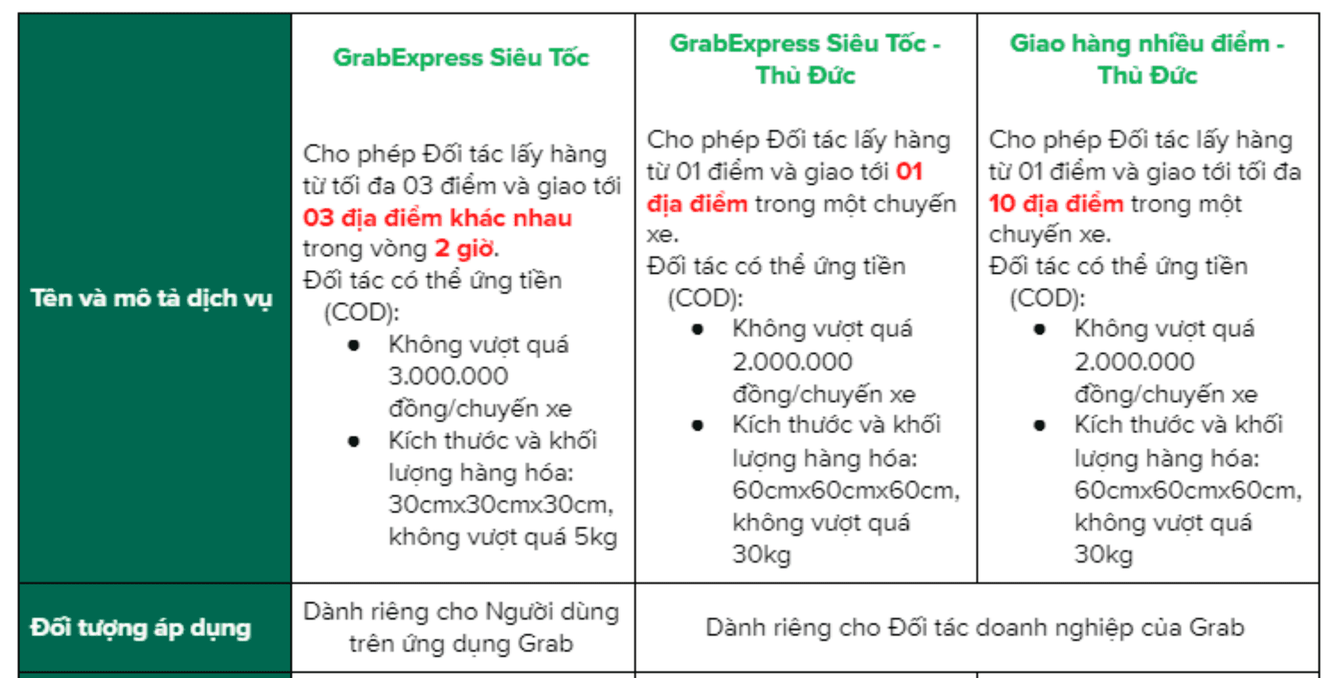 Nhằm đáp ứng nhu cầu giao/ nhận của người dùng và giúp Đối tác có cơ hội gia tăng thu nhập, từ ngày 13/09/2021, Grab cập nhật dịch vụ GrabExpress Siêu Tốc và triển khai dịch vụ GrabExpress Siêu Tốc – Thủ Đức và Giao hàng nhiều điểm – Thủ Đức, với thông tin chi tiết như sau: