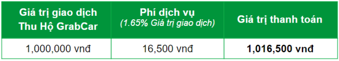 Kể từ ngày 15 tháng 04 năm 2017, Ví điện tử MoMo sẽ áp dụng mức thu phí đối các giao dịch Thu Hộ GrabCar như sau :