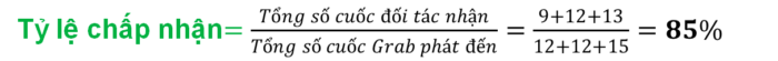 Công thức tính tỷ lệ chấp nhận lũy tiến trên ứng dụng vào thứ 4: