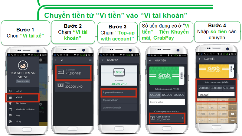 [GrabCar] Ra mắt tính năng chuyển tiền từ Ví tiền vào Ví tài khoản