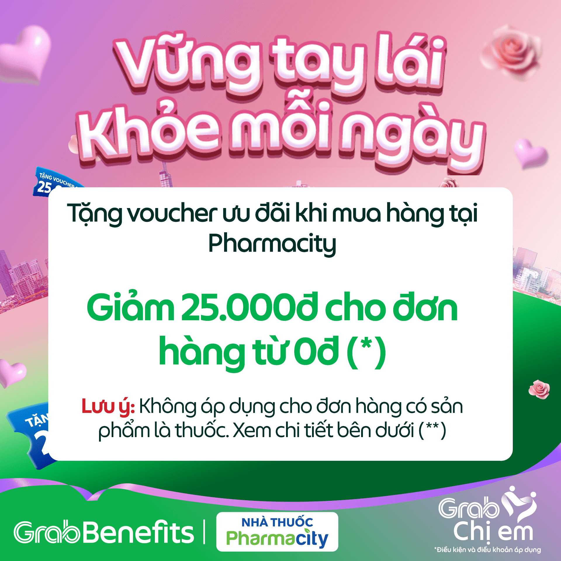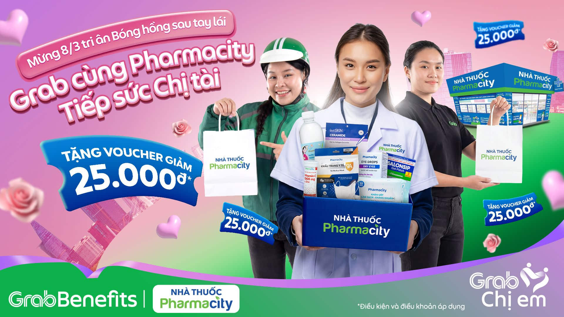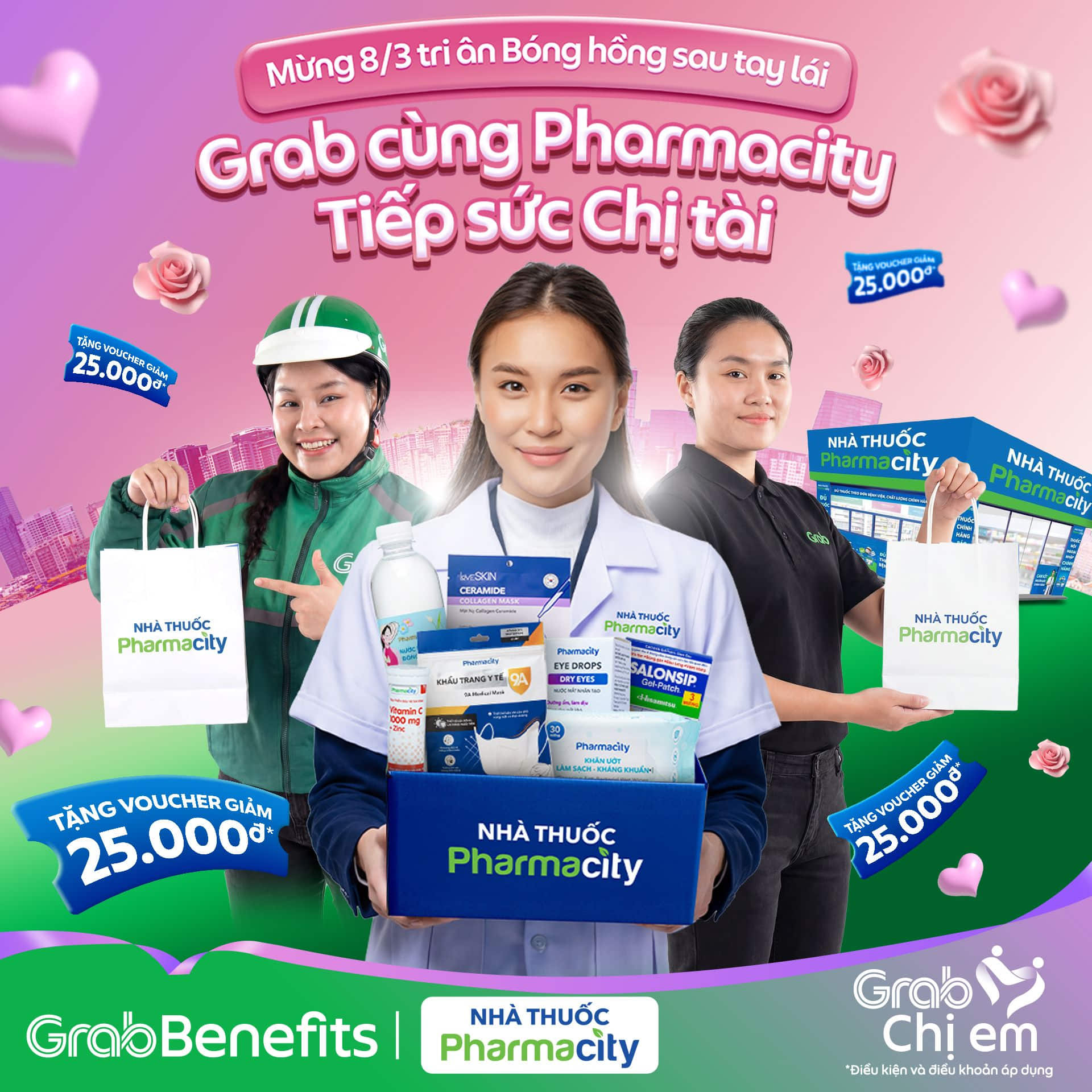 Tháng 3 – Tháng dành riêng cho phái đẹp là dịp để gửi lời tri ân đến những “bông hoa” kiên cường 🌸 GrabBenefits cùng Pharmacity gửi tặng đến Chị Em voucher ưu đãi giá trị 25.000đ – như một lời nhắn gửi Chị Em dành chút thời gian chăm sóc bản thân, để luôn vững vàng trên mọi hành trình.