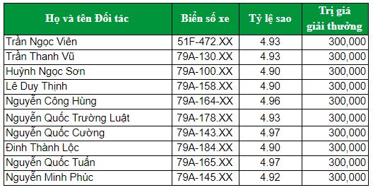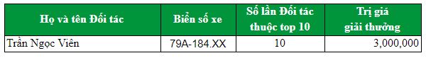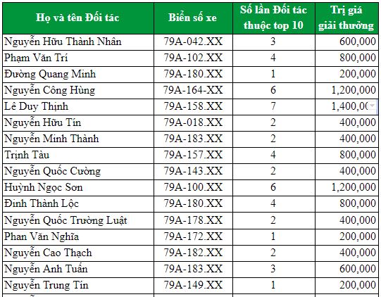 (**) Giá trị giải thưởng trên đã tính giảm trừ.