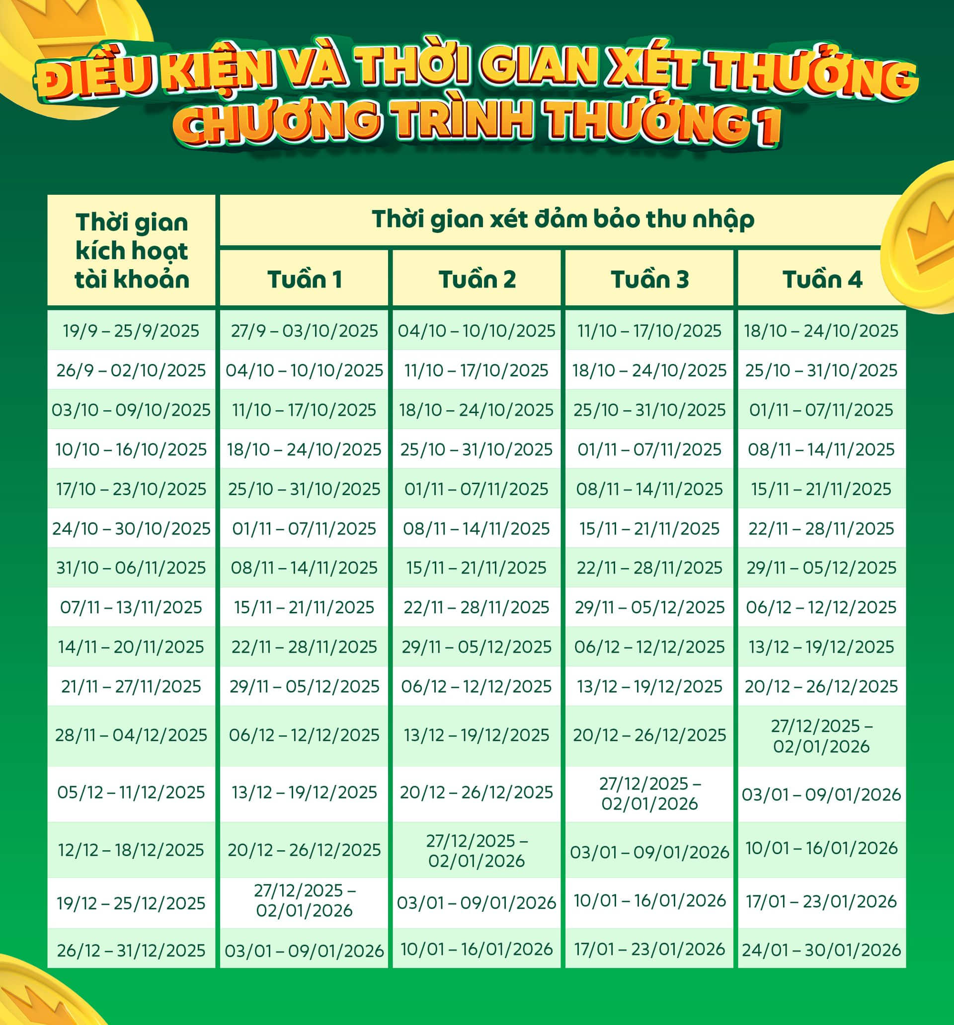Tiền thưởng sẽ được thanh toán vào Ví tiền mặt của Đối tác sau khi kết thúc thời gian xét thưởng.