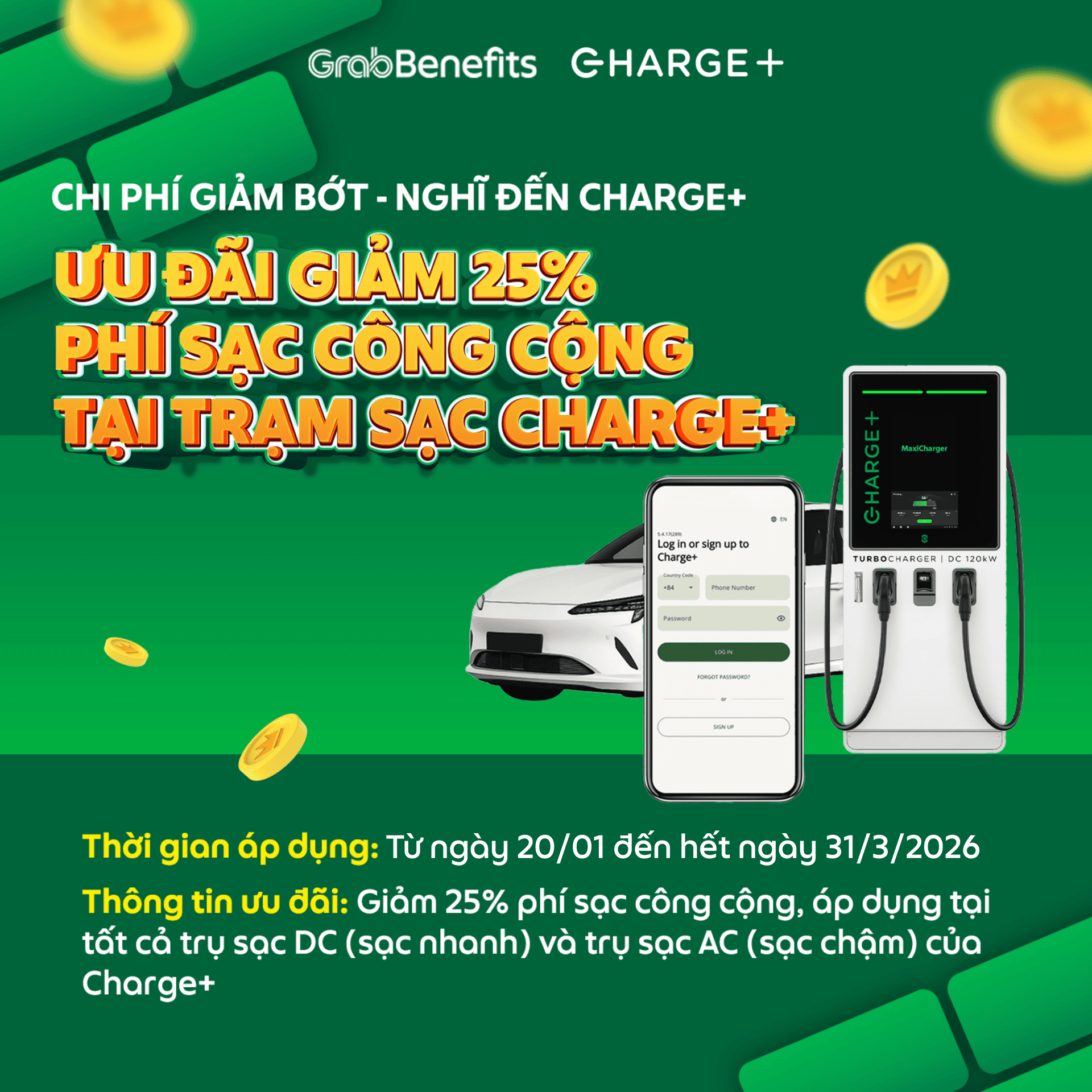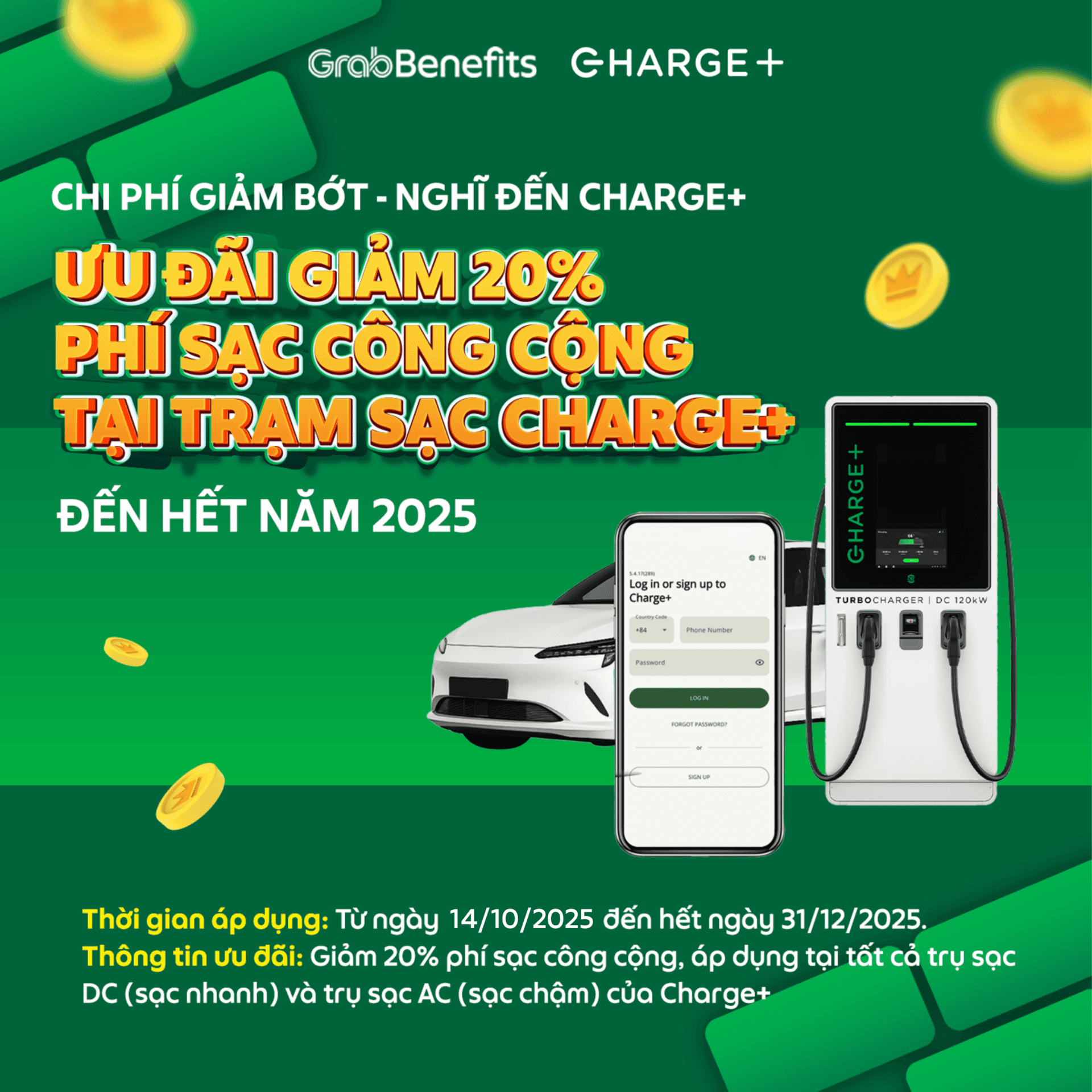 👉 GrabBenefits “tung deal” – Charge+ giảm giá sạc xe điện