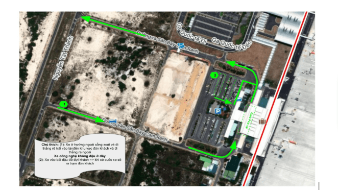 Theo quy định của Cảng hàng không quốc tế Cam Ranh, Đối tác không được dừng xe đón/trả khách quá 03 phút. Đối tác hãy chủ động liên hệ và hướng dẫn Hành khách di chuyển đến đúng khu vực được phép đón khách, đồng thời Đối tác vui lòng thông báo rõ và thu đúng mức phí ra/vào này với Hành khách trong quá trình thực hiện chuyến xe.
