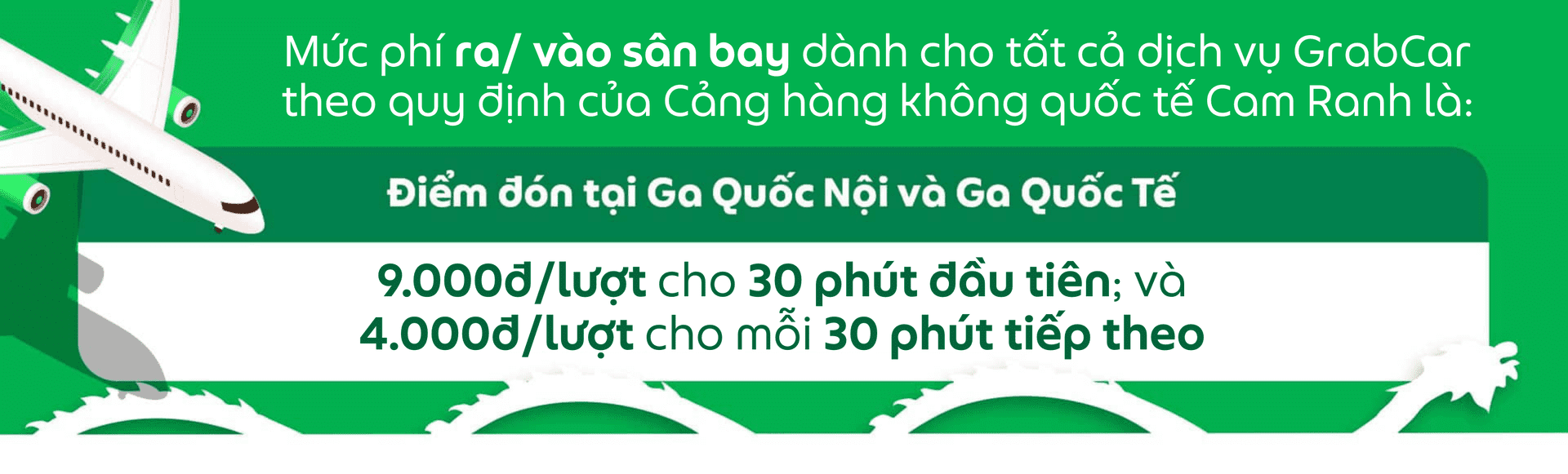 Trong trường hợp mức phí nêu trên thay đổi theo quyết định của Cảng hàng không quốc tế Cam Ranh, Grab sẽ cập nhật thay đổi này đến Đối tác bằng các phương thức phù hợp.