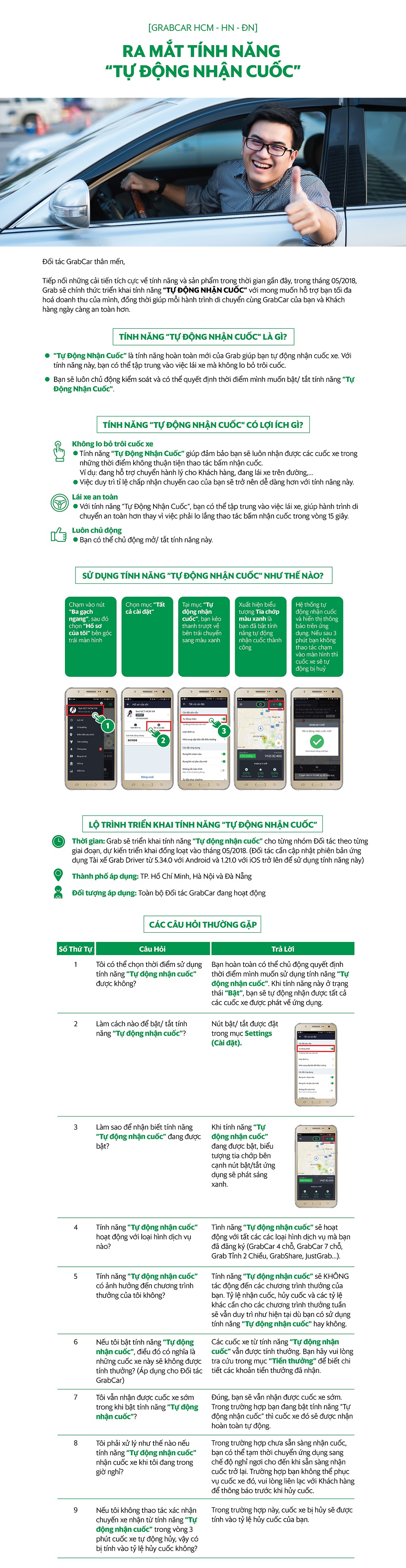 [GrabCar HCM-HN-ĐN] Ra mắt tính năng “Tự động nhận cuốc”