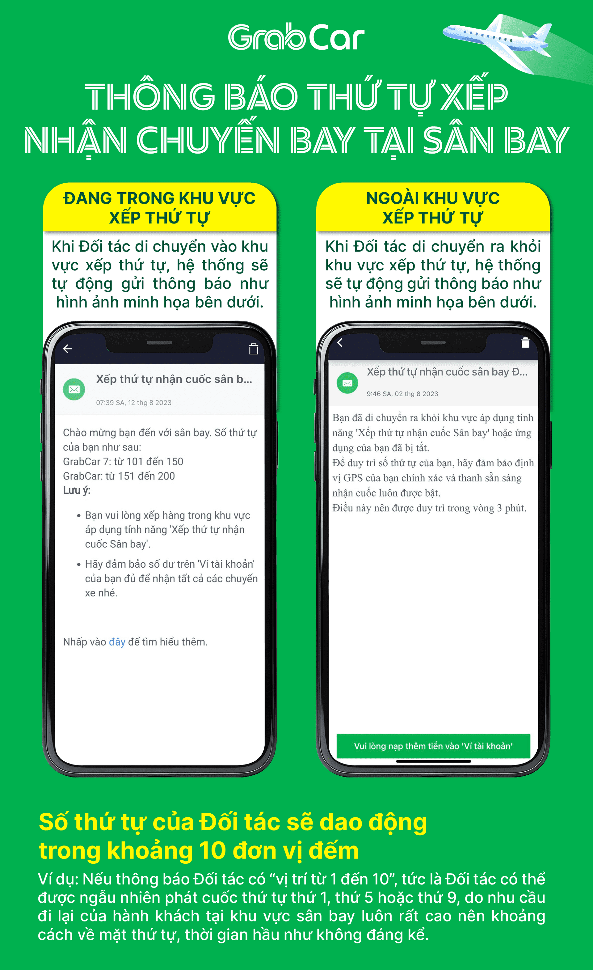 • Mọi trường hợp vi phạm sẽ bị xử lý theo nội quy, quy định của sân bay và Bộ quy tắc ứng xử của Grab dành cho Đối tác.