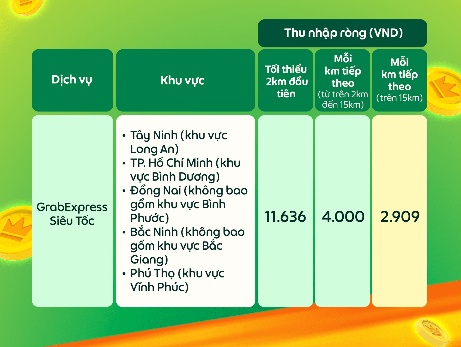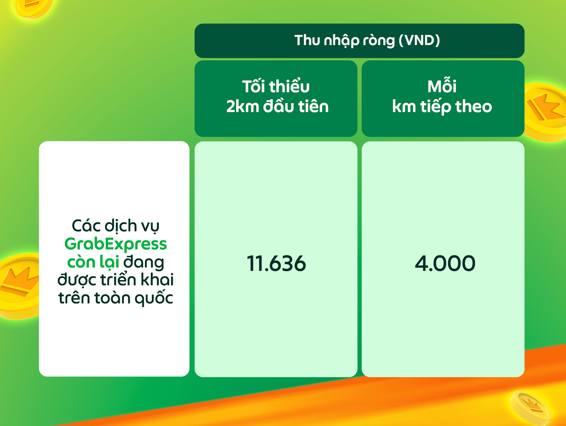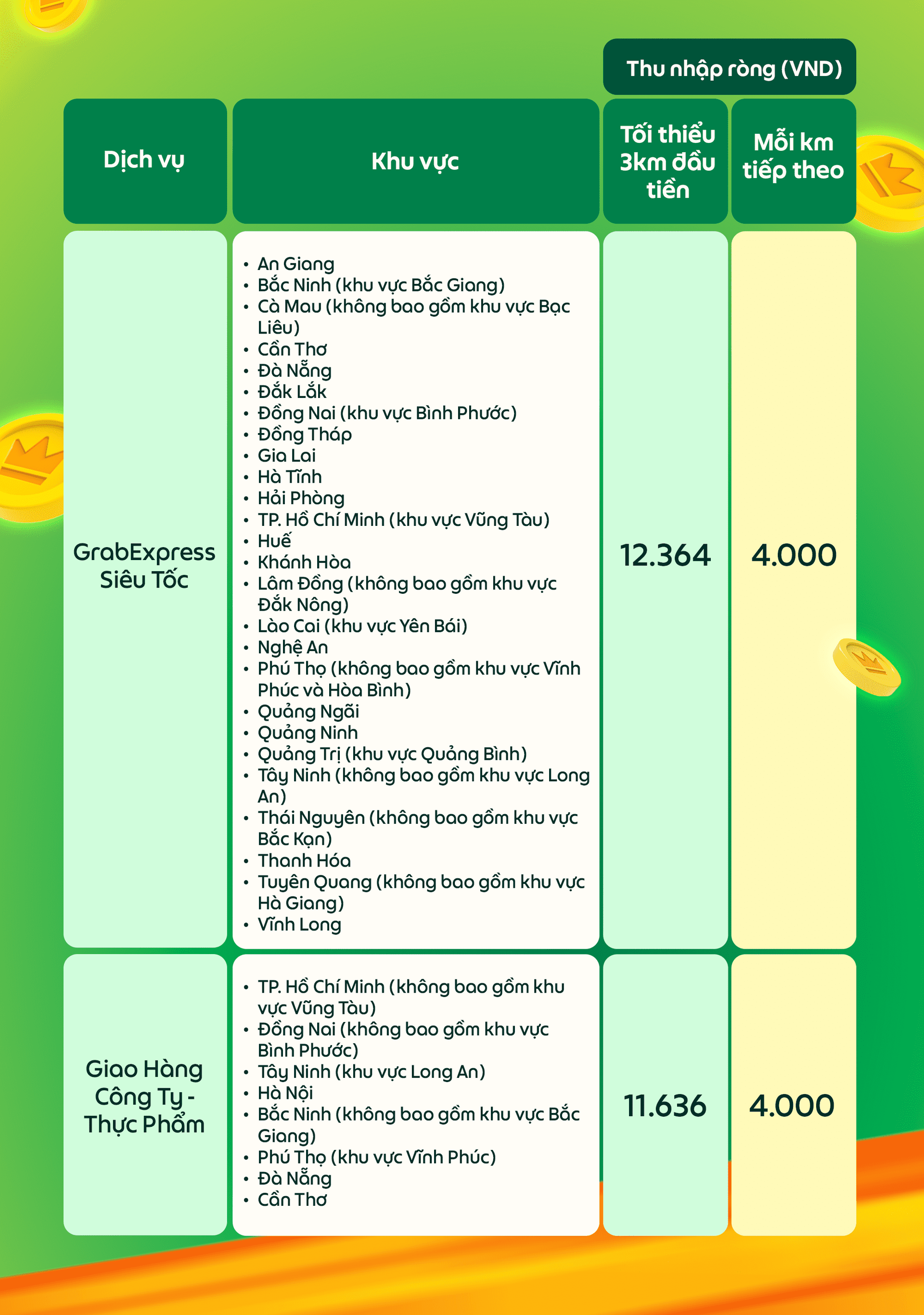 • Thu nhập ròng trên mỗi chuyến xe GrabExpress (đã được khấu trừ phí sử dụng ứng dụng thuế GTGT (theo mức thuế suất áp dụng)) được tính như sau: