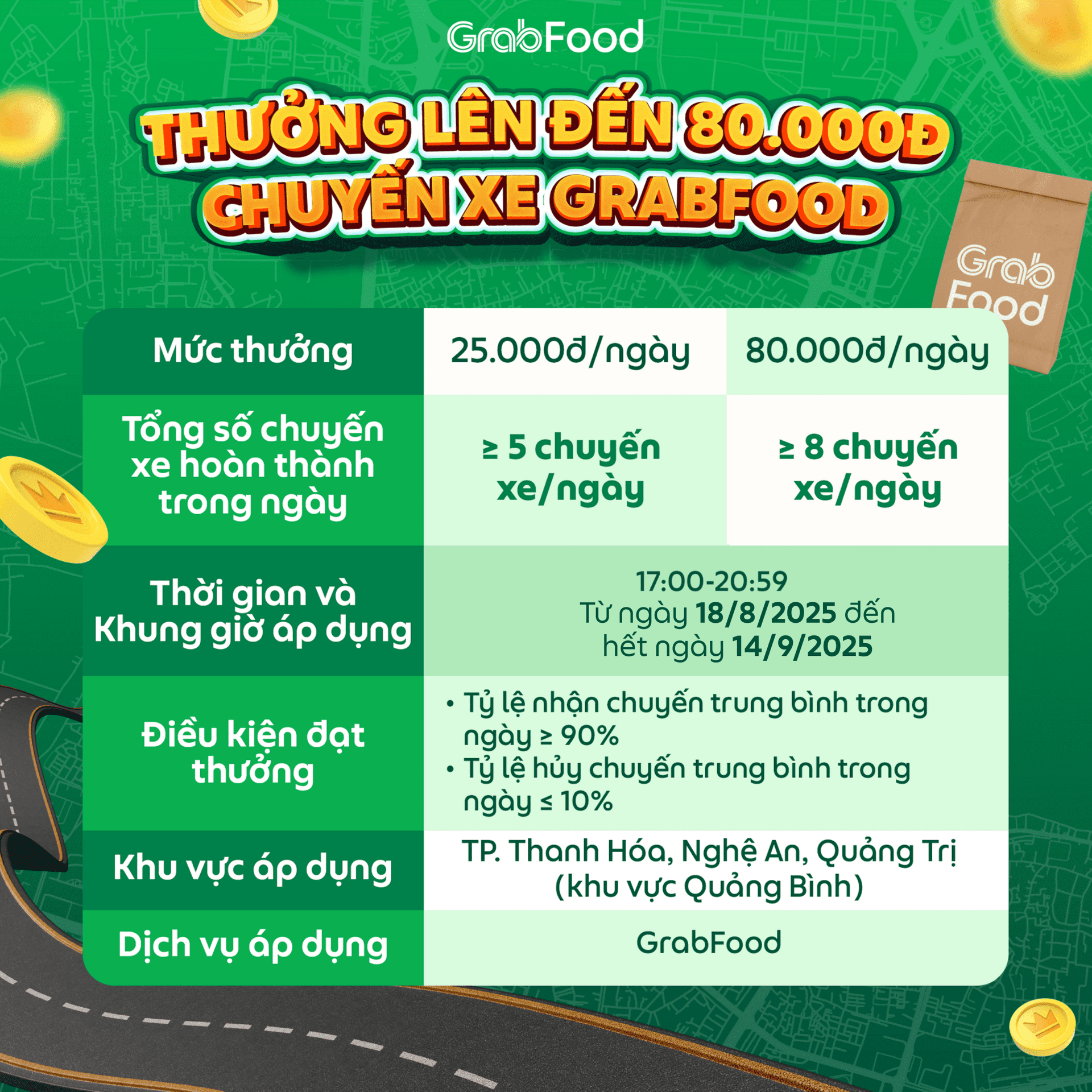 Các điều kiện của chương trình có thể thay đổi và sẽ được thông báo đến Đối tác, Grab có toàn quyền quyết định điều kiện và mức thưởng cuối cùng.