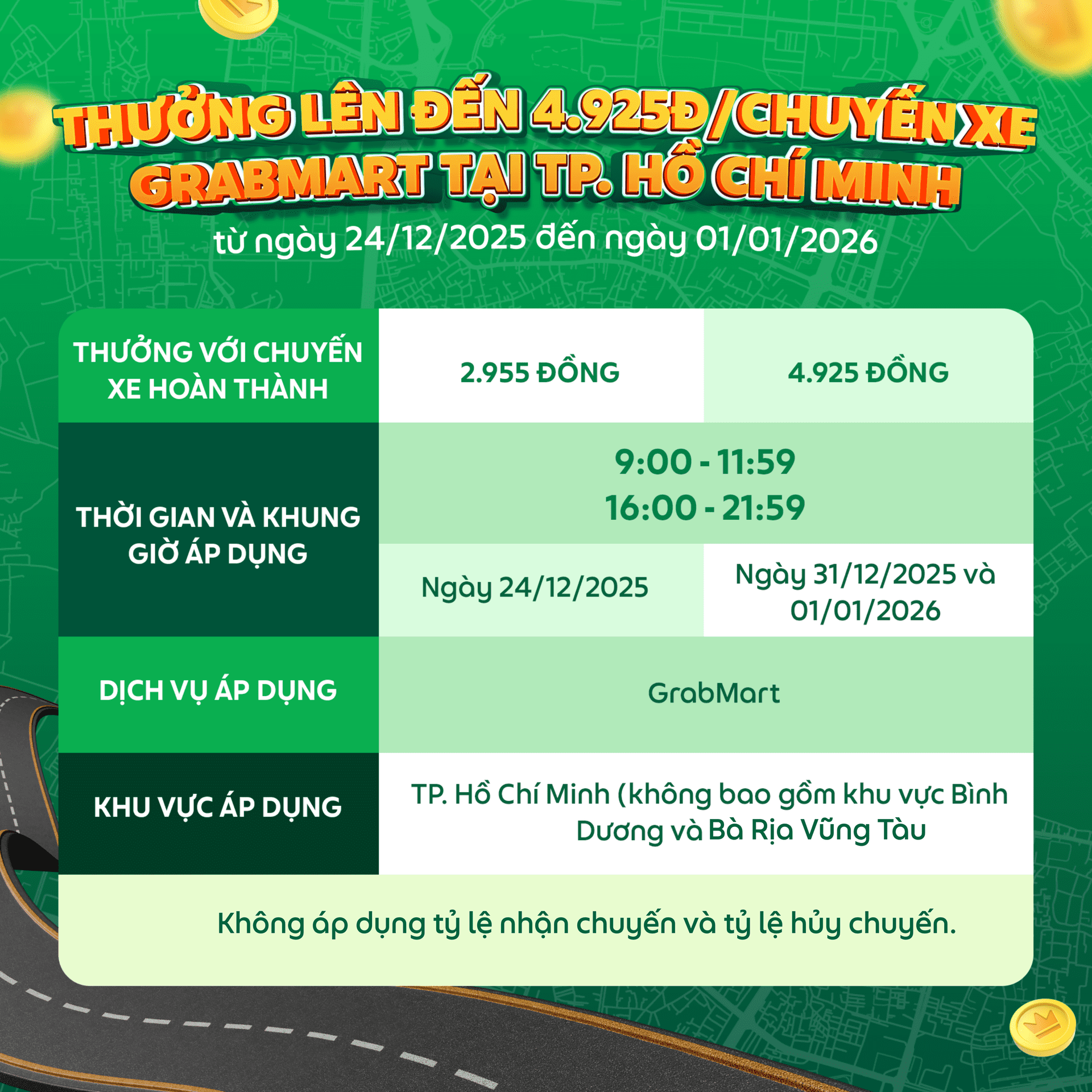 GrabMart | Thưởng lên đến 4.925đ/chuyến xe GrabMart tại TP. Hồ Chí Minh từ ngày 24/12/2025 đến ngày 01/01/2026