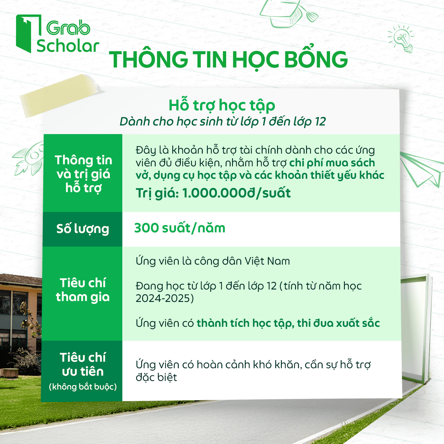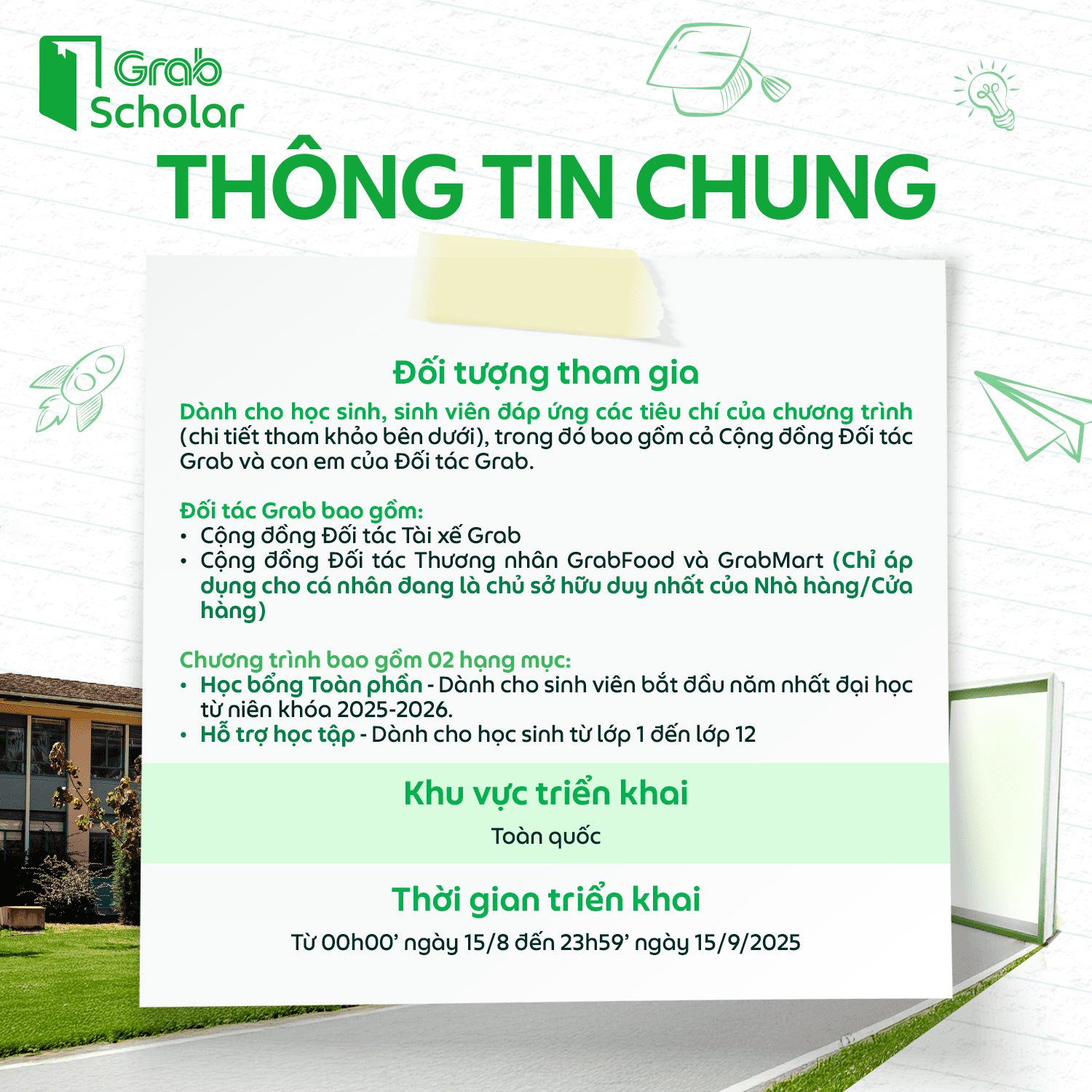 Với mong muốn tiếp thêm động lực học tập cho các em học sinh, sinh viên trên toàn quốc, Chương trình GrabScholar: Mở lối tương lai em – năm 2025 (Chương trình GrabScholar) chính thức được Grab khởi động.