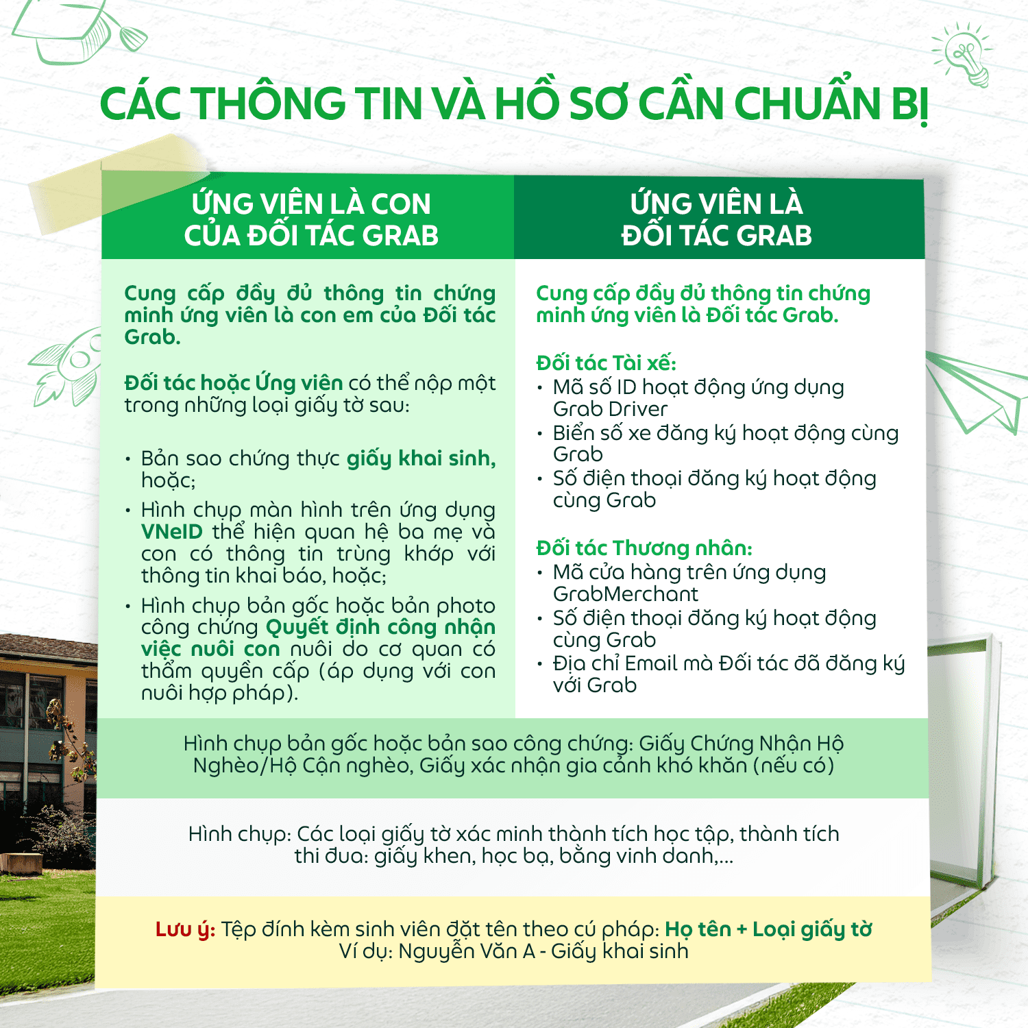 Trong trường hợp Đối tác và gia đình có ≥02 ứng viên tham gia nộp hồ sơ: Grab sẽ ưu tiên chọn 01 ứng viên có thành tích học tập nổi bật hơn.