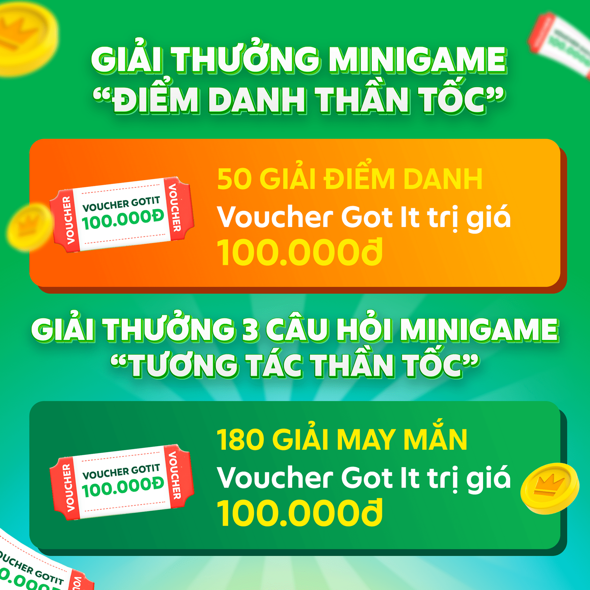 2. Các giải thưởng từ Livestream GRABTALKS: “HOẠT ĐỘNG GRAB HIỆU QUẢ, ĐÓN ‘KHUNG GIỜ HIỆU QUẢ’” sẽ được trao như sau: Các voucher GotIt sẽ được gửi kèm thông báo chúc mừng tới Đối tác may mắn nhận được giải thưởng thông qua tin nhắn thông báo tại mục Tin nhắn trong ứng dụng Grab Driver.