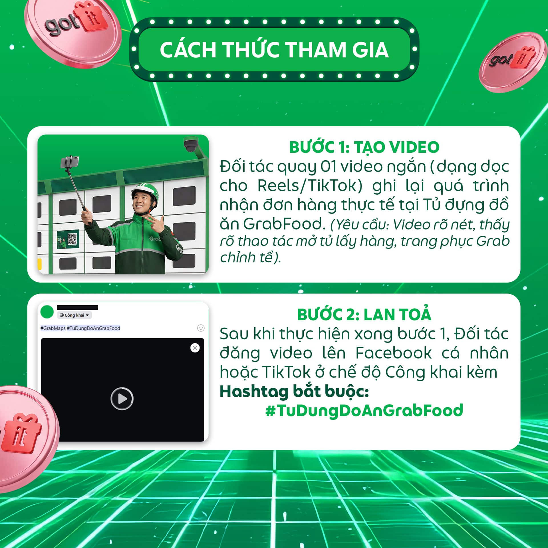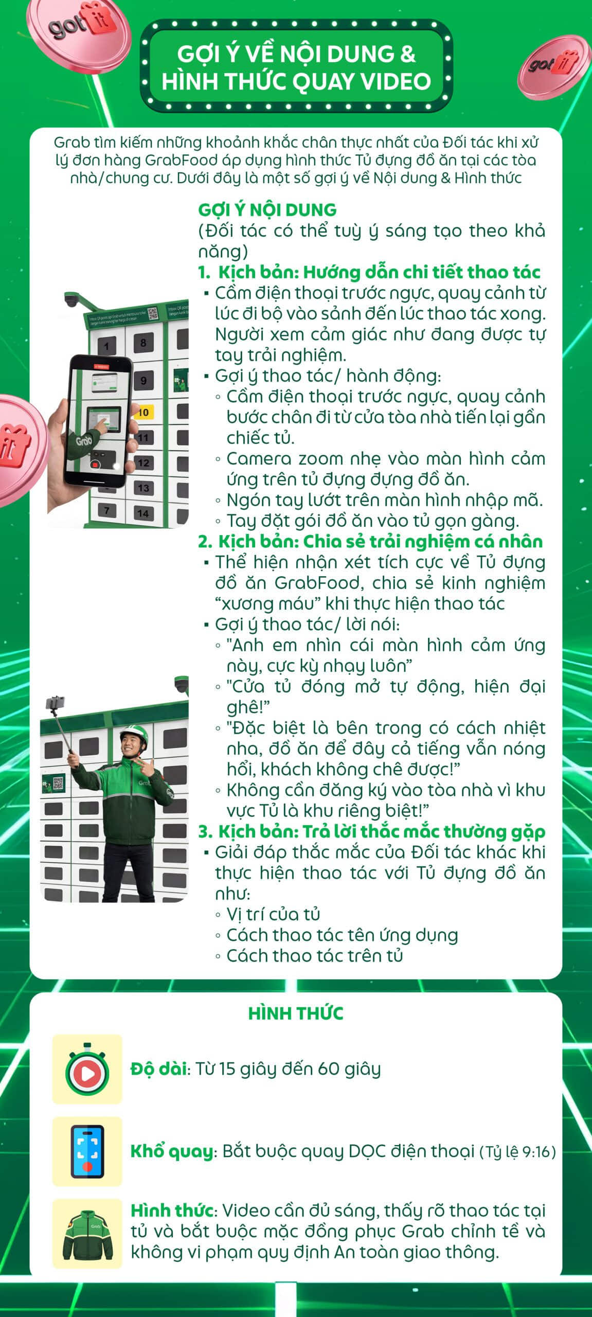 Đây là sân chơi dành cho nhà sáng tạo nội dung tỏa sáng với video chuyên nghiệp về “Tủ đựng đồ ăn GrabFood”, vừa nhận về những phần quà giá trị từ Grab!