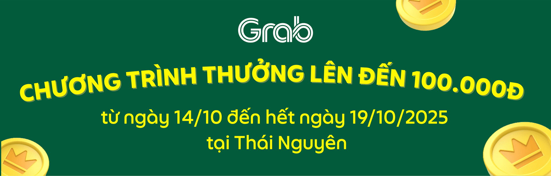 Grab xin thông báo triển khai chương trình thưởng dành cho các Đối tác Grab 2 bánh tại khu vực Thái Nguyên. Chi tiết chương trình như sau: