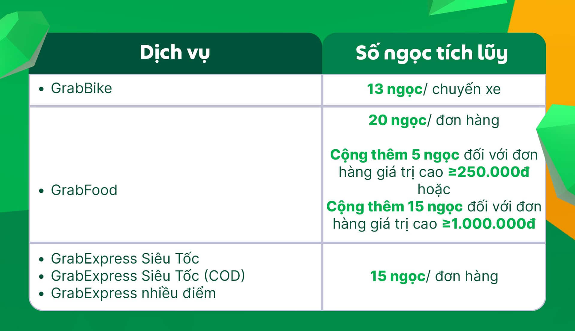 Từ ngày 28/7/2025, Grab cập nhật chương trình thưởng ngọc tích lũy mỗi ngày với chi tiết như sau: