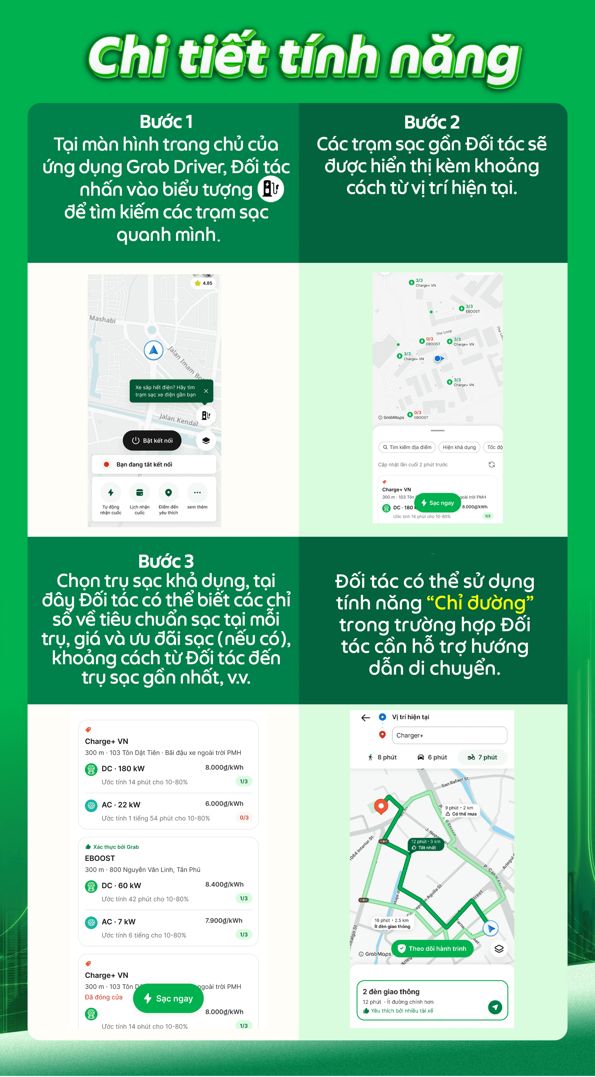 Nếu trạm sạc đang bận hoặc không hoạt động, tôi nên làm gì? | Đối tác có thể tìm và điều hướng đến trạm sạc khác gần đó thông qua bản đồ trong ứng dụng. |
