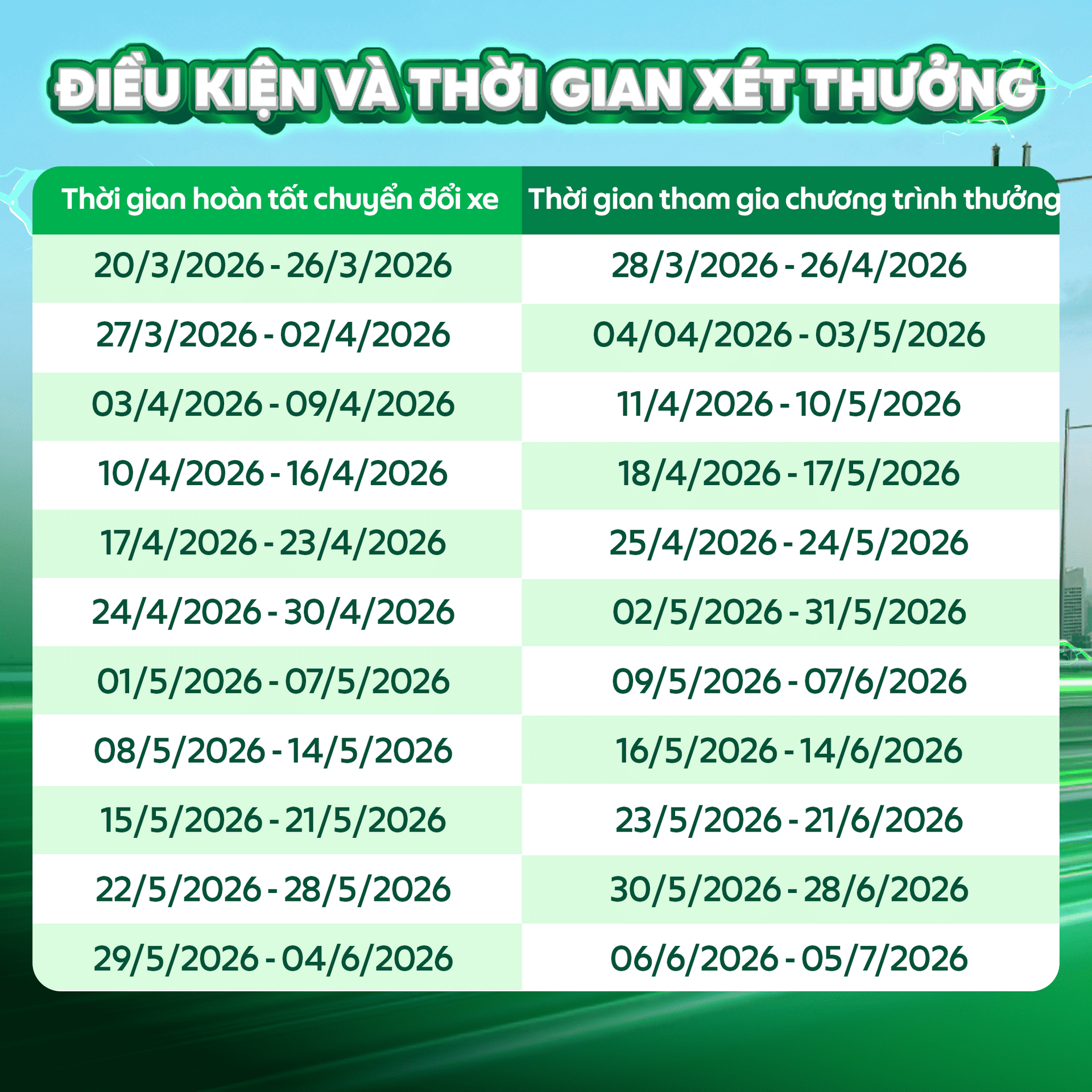 Lưu ý cho bài viết: Đây là bài viết tổng hợp các chương trình thưởng dành cho Đối tác chuyển đổi sang xe máy điện từ những chương trình trước. Vui lòng tham khảo đường dẫn chi tiết để nắm rõ điều kiện áp dụng.