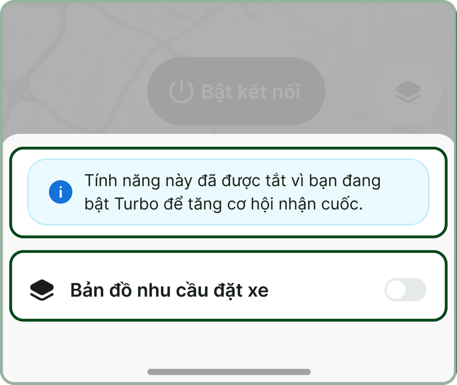 Tính năng “Bản đồ nhu cầu đặt xe” sẽ không khả dụng khi Đối tác bật Chế độ tối ưu hóa – Turbo.