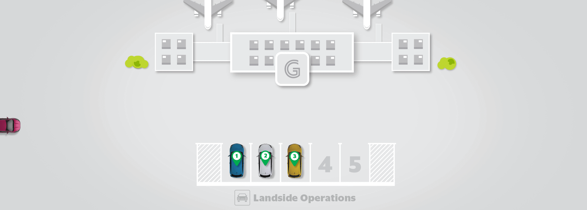 Viền màu vàng: Khu vực bãi đậu xe sân bay, khi Đối tác đỗ phương tiện:
