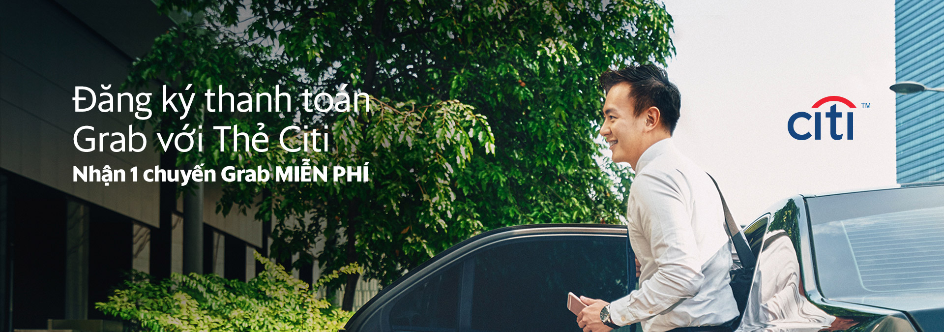Bạn chưa có thẻ tín dụng Citibank? Hãy đăng kí thẻ mới theo link bên dưới để nhận ưu đãi – miễn phí cho 20 chuyến đi Grab (tối đa 50.000VNĐ/chuyến).