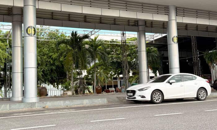 4. Đi thẳng đến cột Số 05 – 06 – 07, kiểm tra biển số và lên đúng xe GrabCar bạn đã đặt: