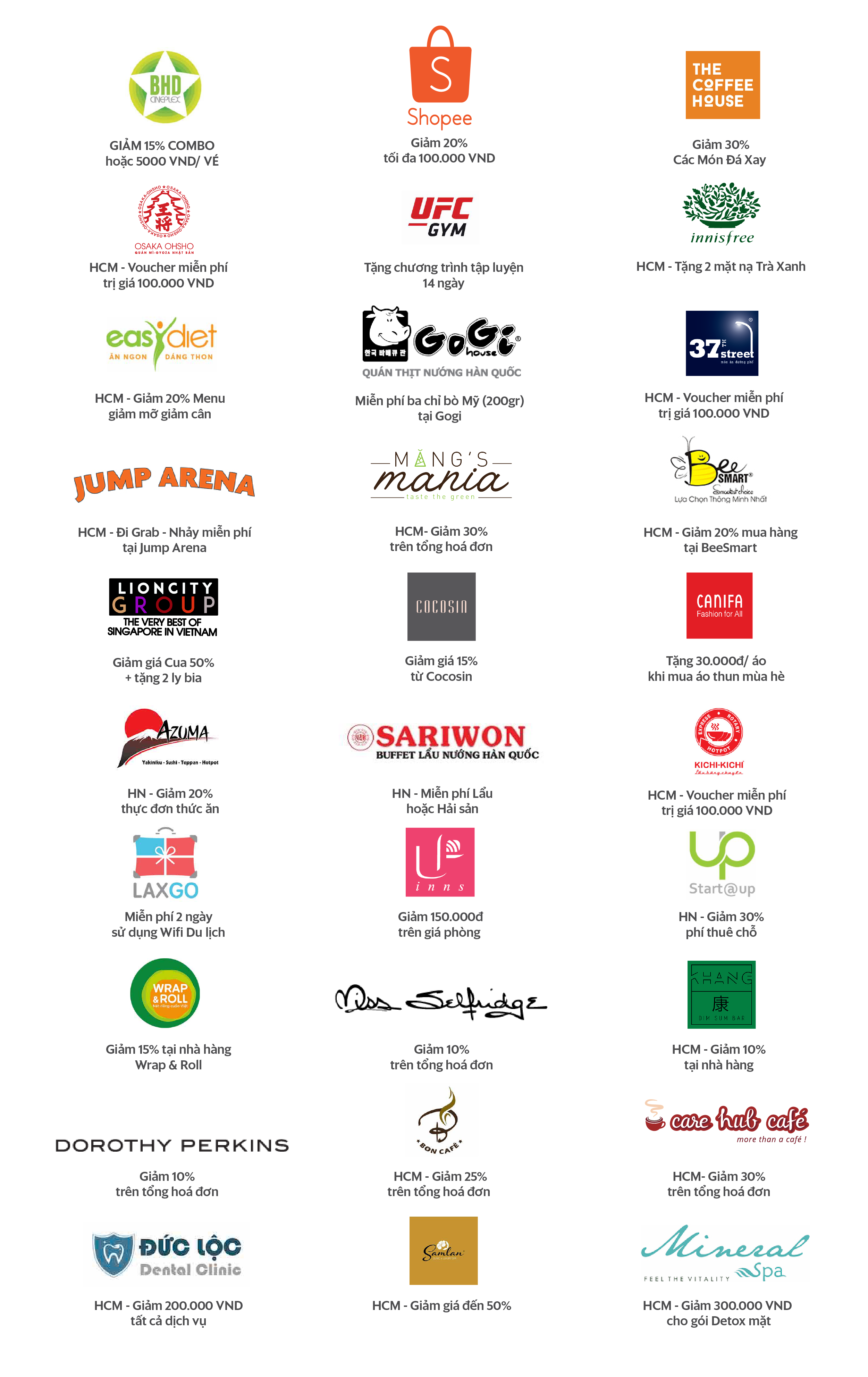 Danh mục các Khuyến Mãi hiện có:
