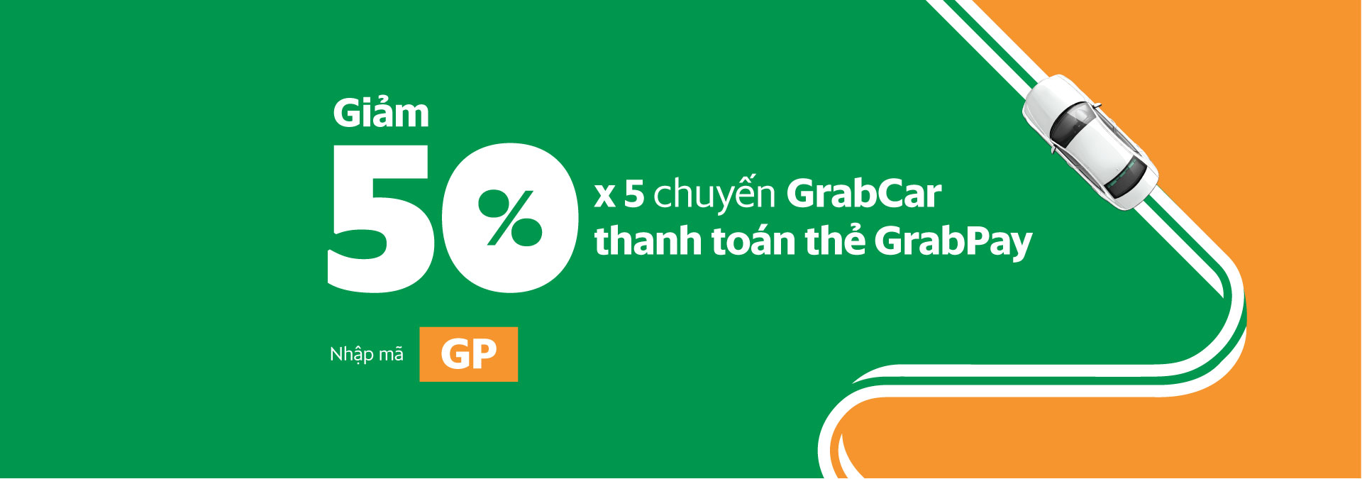 – Nhập mã GP khi đi GrabCar và thanh toán bằng thẻ (GrabPay) hoặc nạp thêm tín dụng (GrabPay Credits), bạn được giảm giá 50% (tối đa 30.000đ/chuyến)