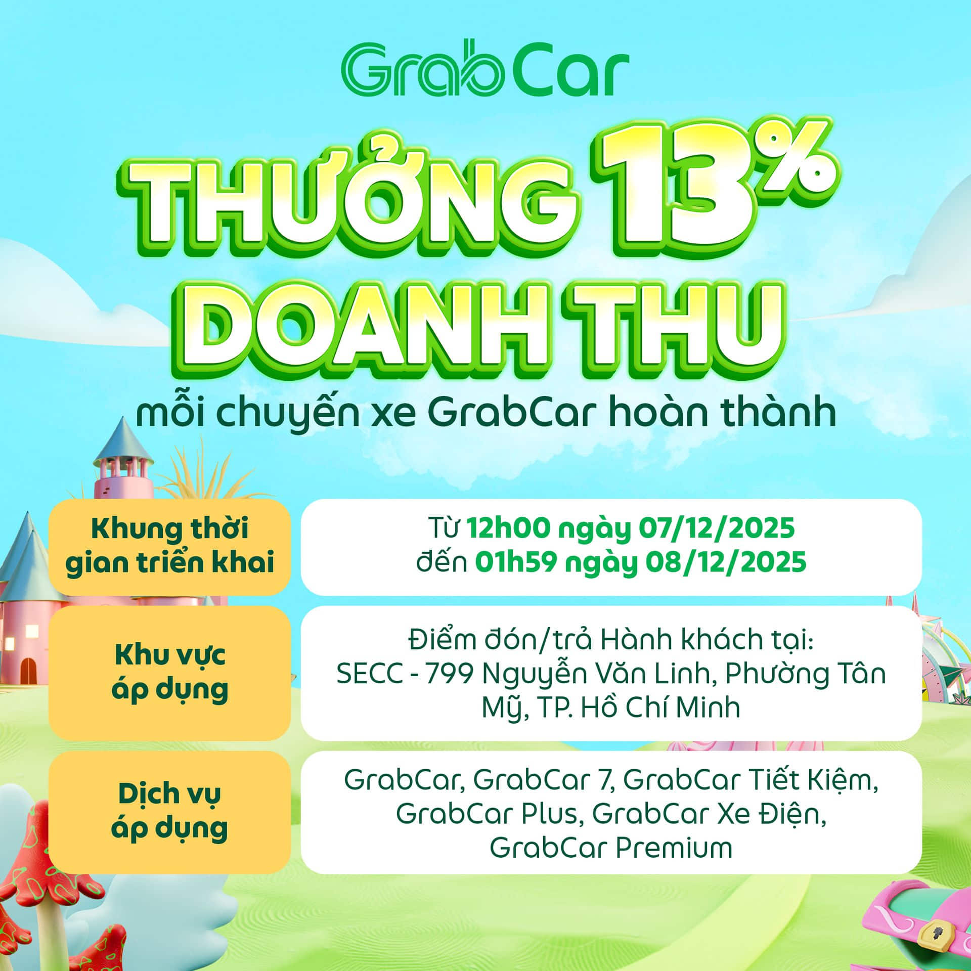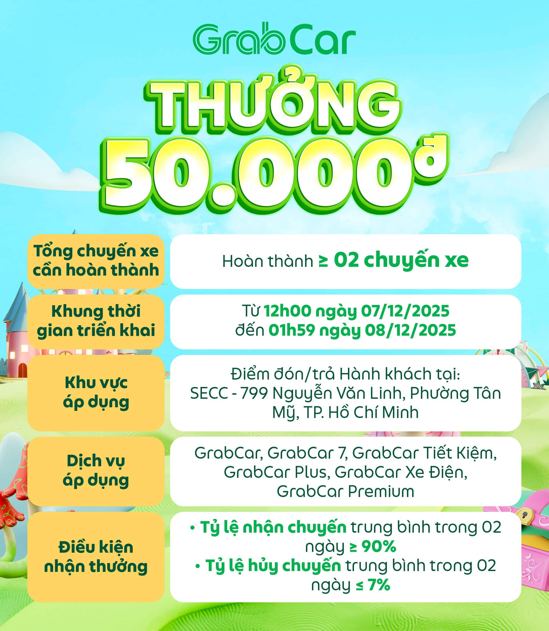 GrabCar | 02 chương trình thưởng đặc biệt ngày 07 – 08/12/2025 tại TP. Hồ Chí Minh