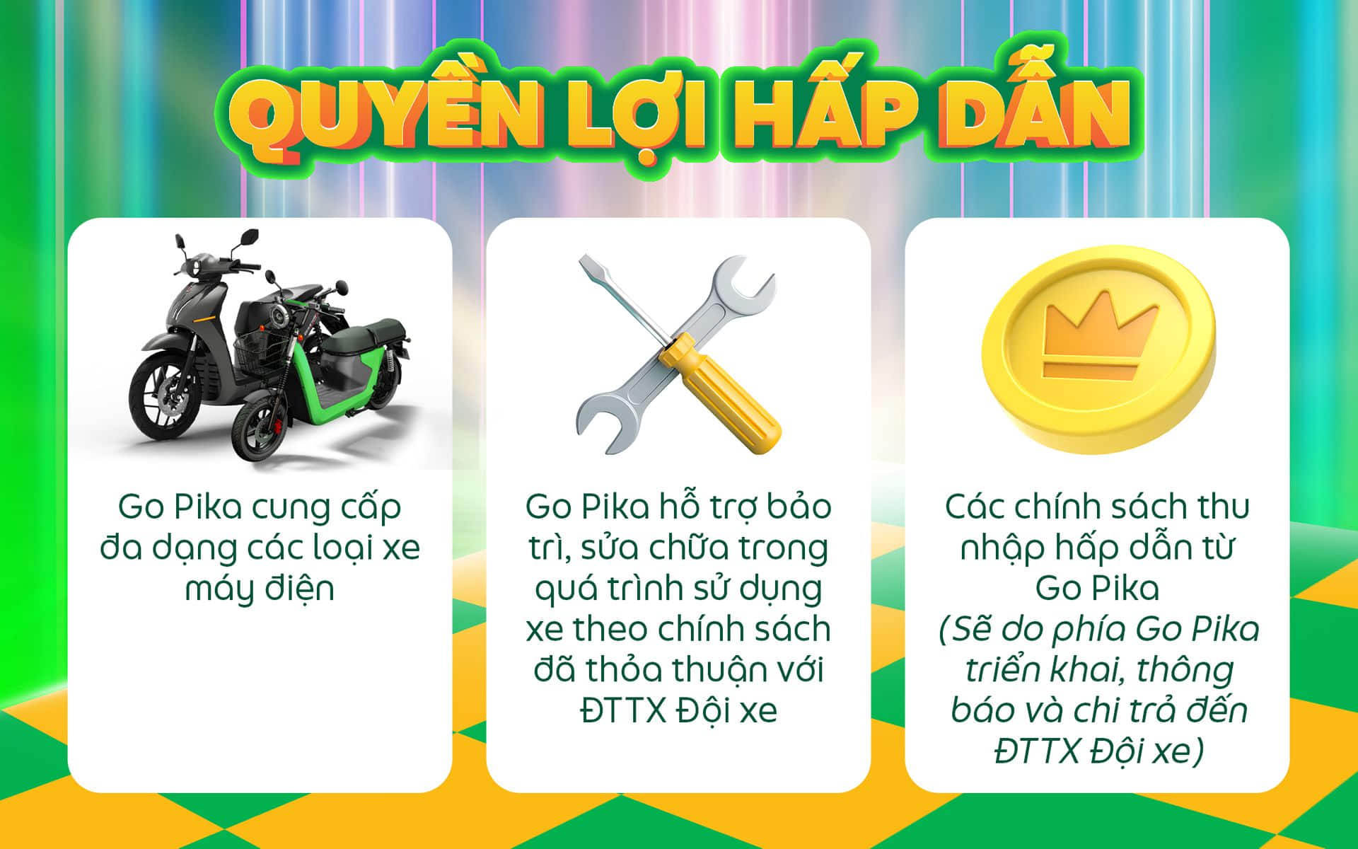 ĐTTX Đội xe chủ động lựa chọn hình thức hợp tác với Go Pika phù hợp với nhu cầu của mình và quy định của Go Pika tại từng thời điểm.