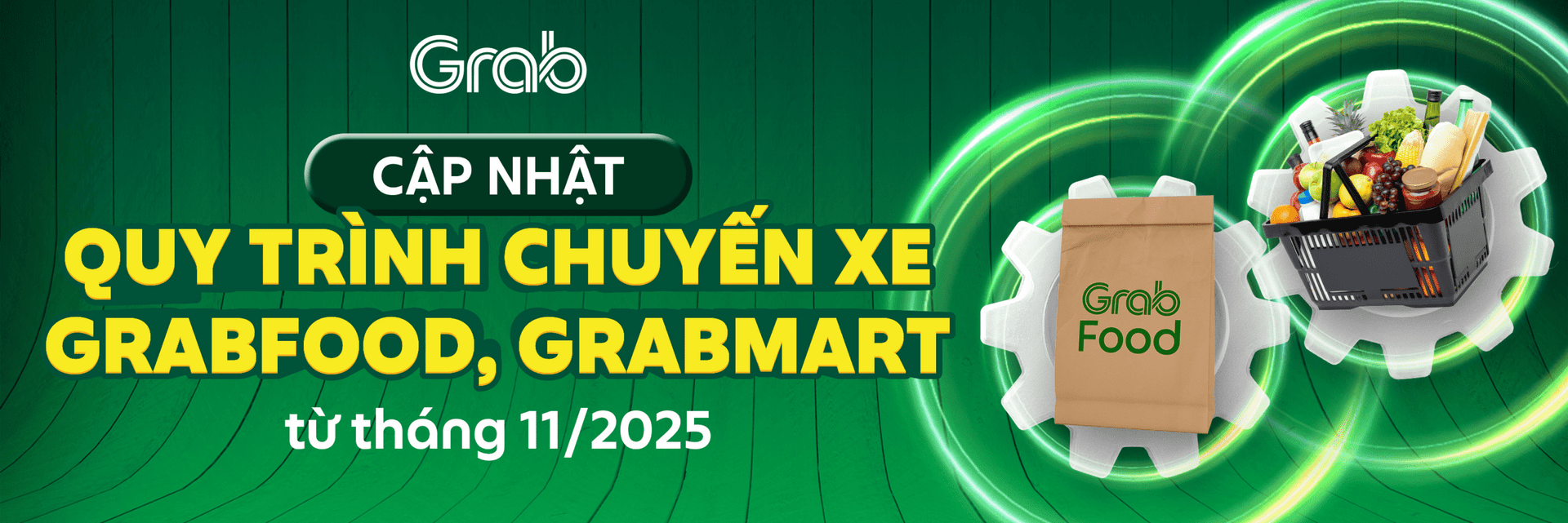 Từ tháng 11/2025, Grab triển khai thử nghiệm cập nhật quy trình thực hiện chuyến xe GrabFood, GrabMart nhằm đảm bảo sự công bằng cho Đối tác, cũng như tăng tính minh bạch trong quá trình xác nhận giao đơn đến Người dùng. Thông tin cụ thể như sau: