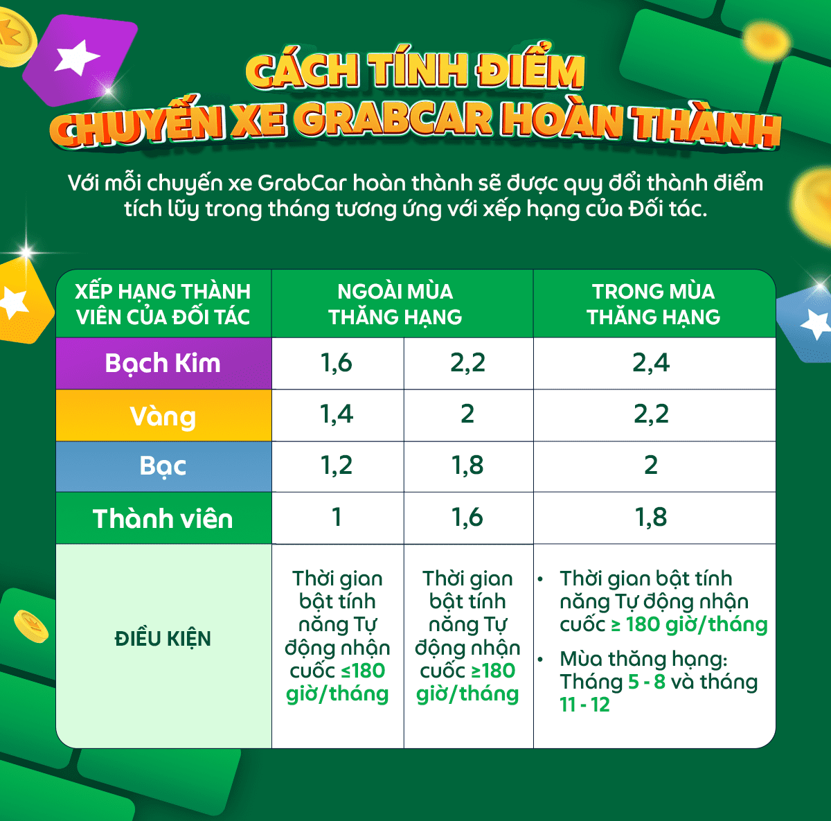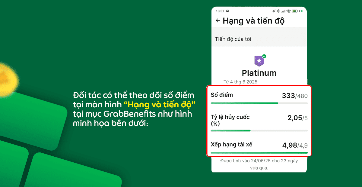 Thời gian áp dụng: từ ngày 01/12/2025 (dựa trên số chuyến xe hoàn thành và số giờ hoạt động tháng trước đó (Tháng 11/2025 dùng để xét hạng thành tích cho tháng hiện tại (Tháng 12/2025)) cho đến khi có thông báo mới.