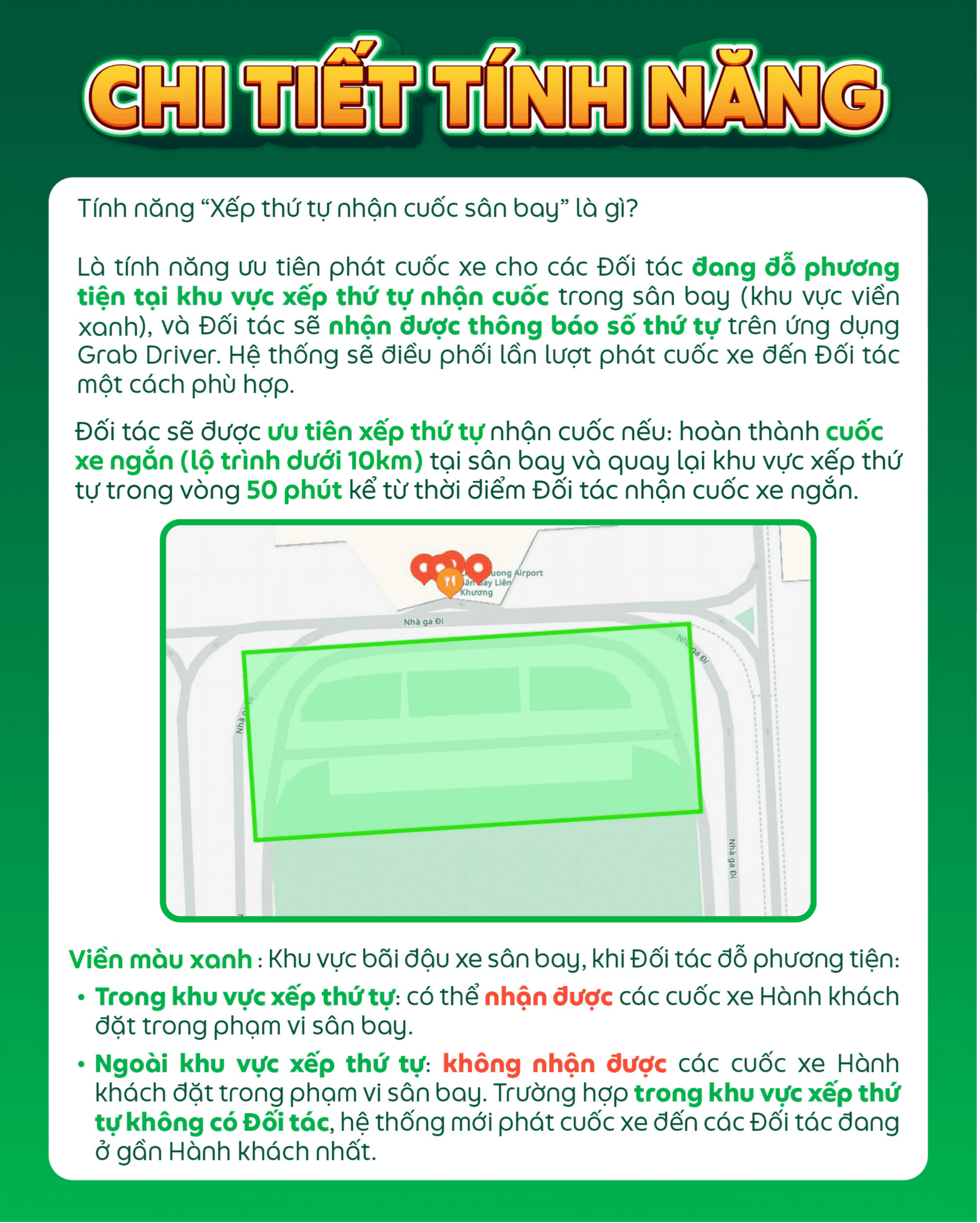 Nhằm giúp hoạt động của Đối tác tại khu vực sân bay trở nên dễ dàng và thuận lợi hơn, từ ngày 08/01/2026, Grab triển khai tính năng “Xếp thứ tự nhận cuốc sân bay” tại Sân bay quốc tế Liên Khương cụ thể như sau: