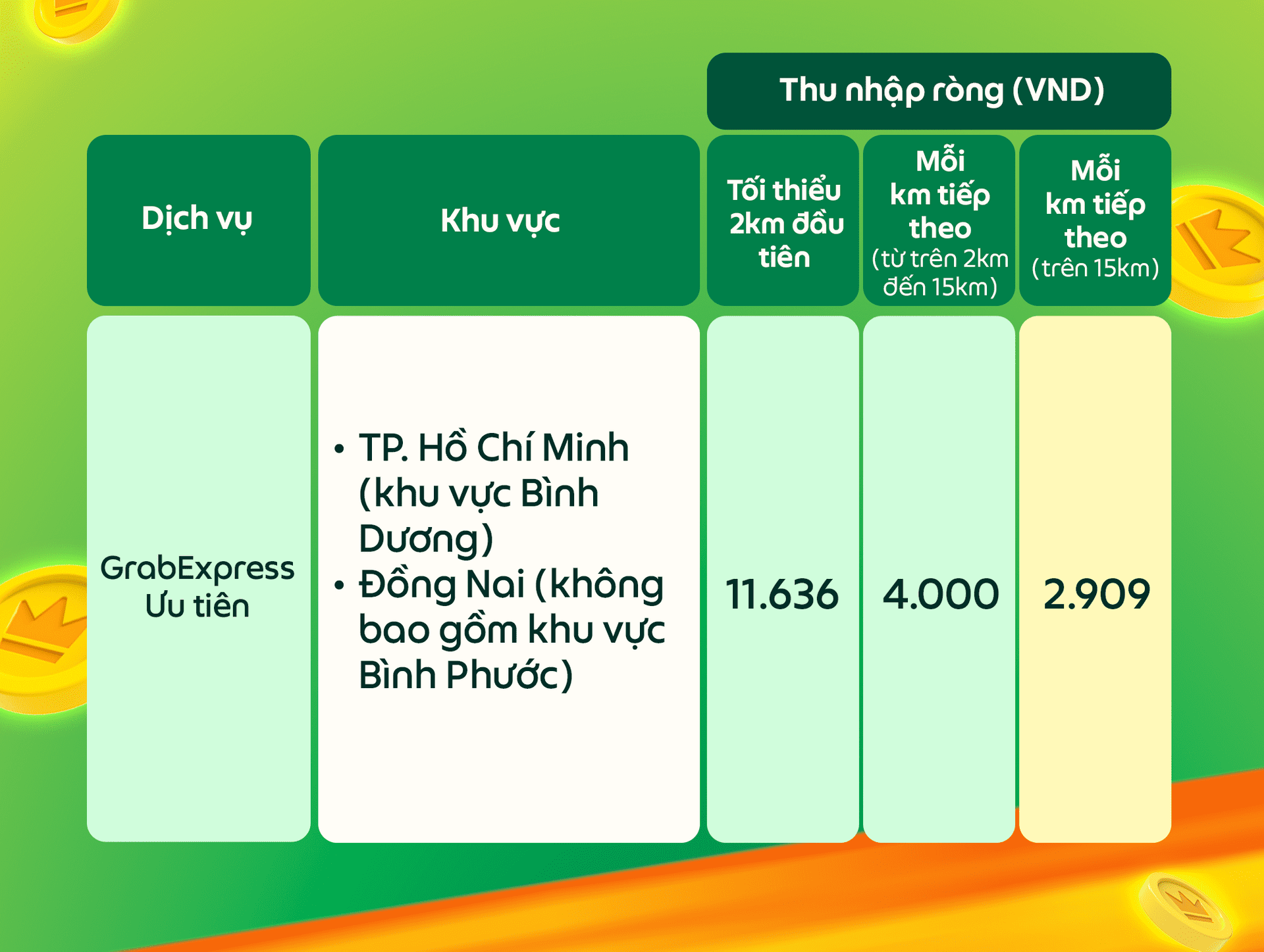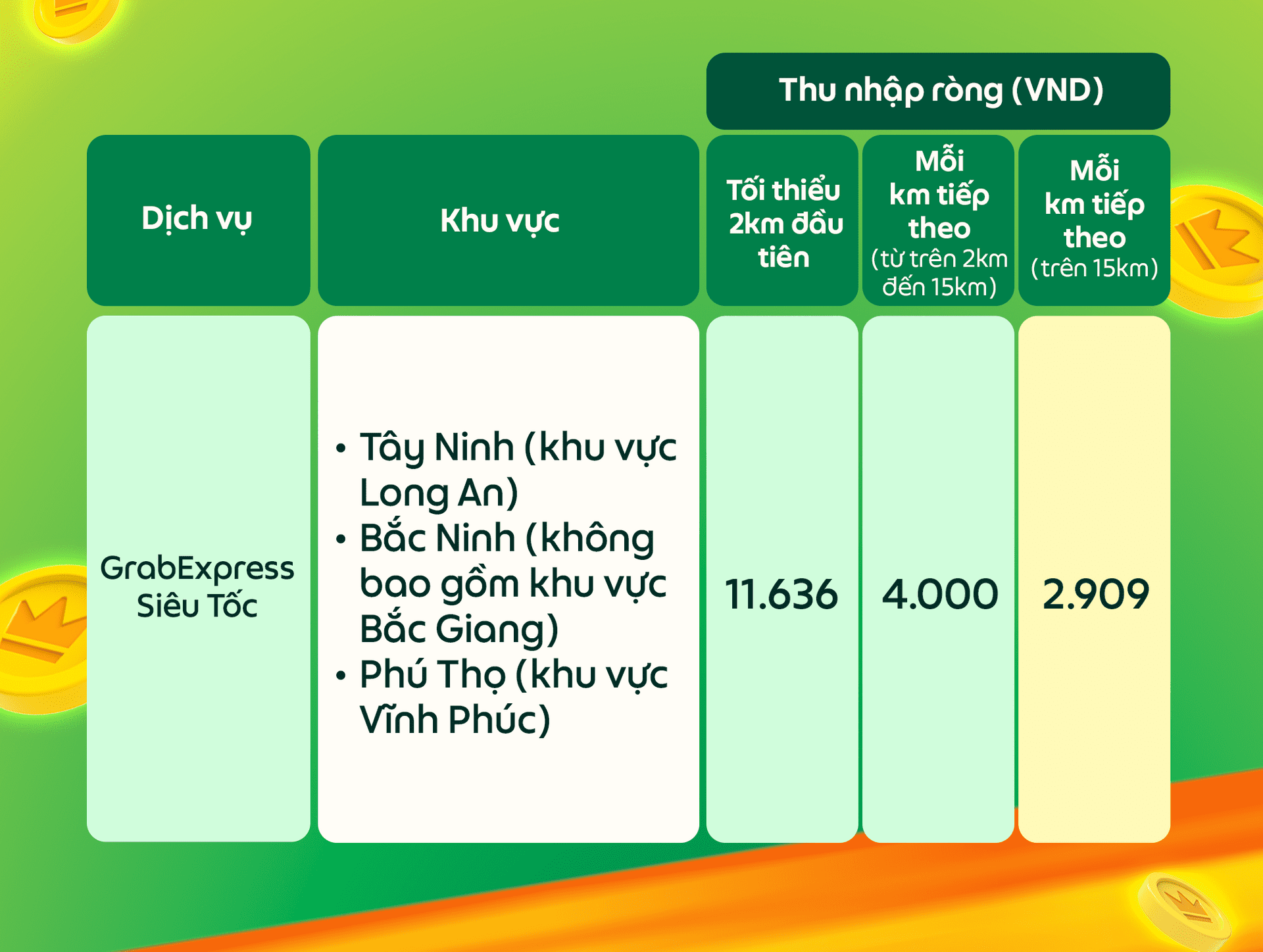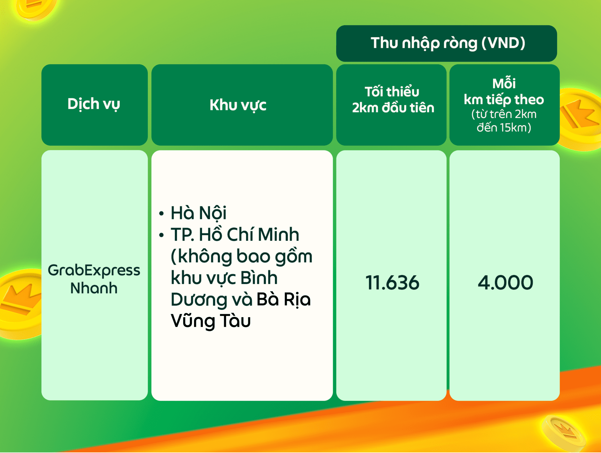 • Thu nhập ròng trên mỗi chuyến xe GrabExpress (đã được khấu trừ phí sử dụng ứng dụng thuế GTGT (theo mức thuế suất áp dụng)) được tính như sau: