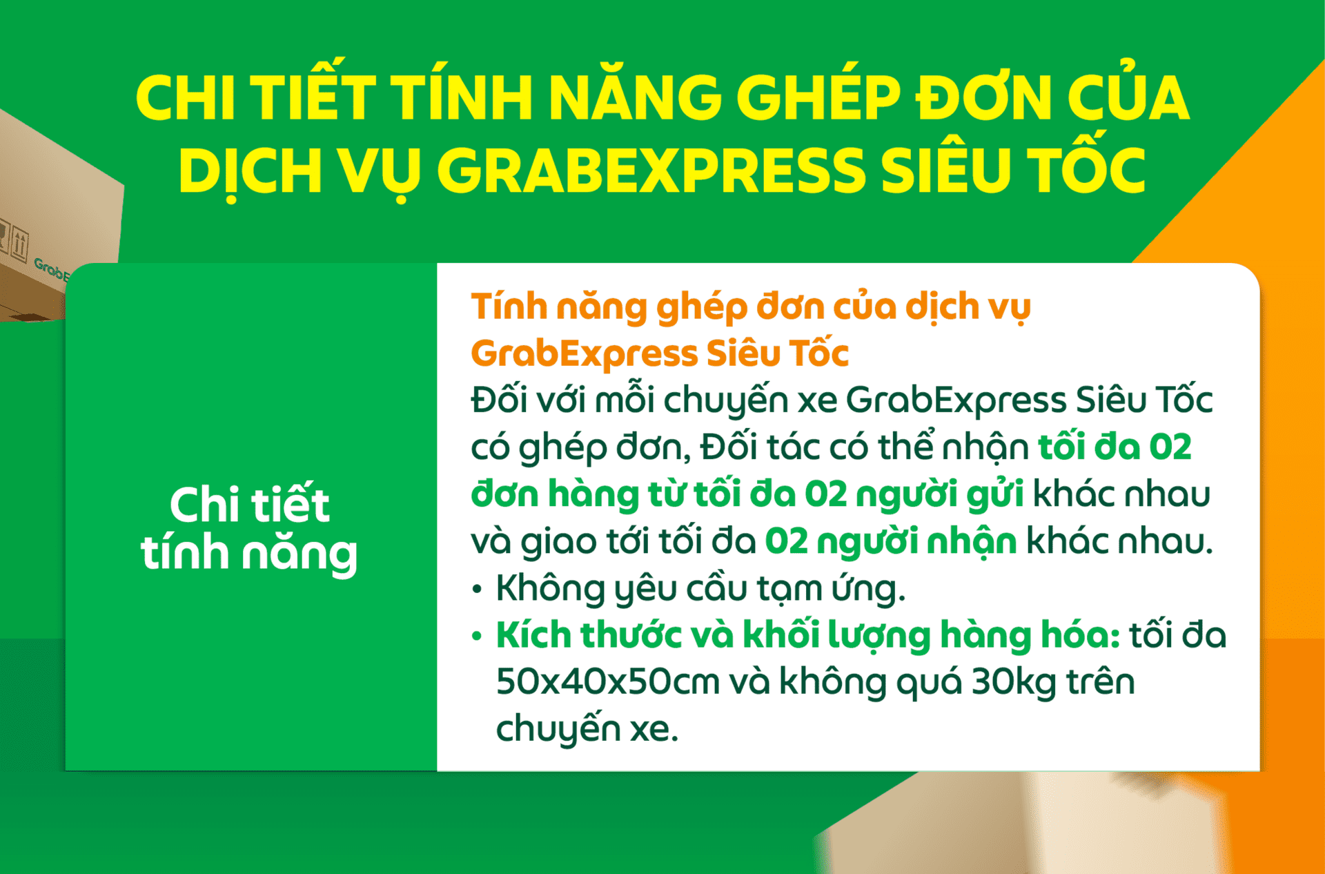 Từ ngày 28/7/2025, Grab sẽ cập nhật tính năng ghép đơn đối với dịch vụ GrabExpress Siêu Tốc. Chi tiết như sau: