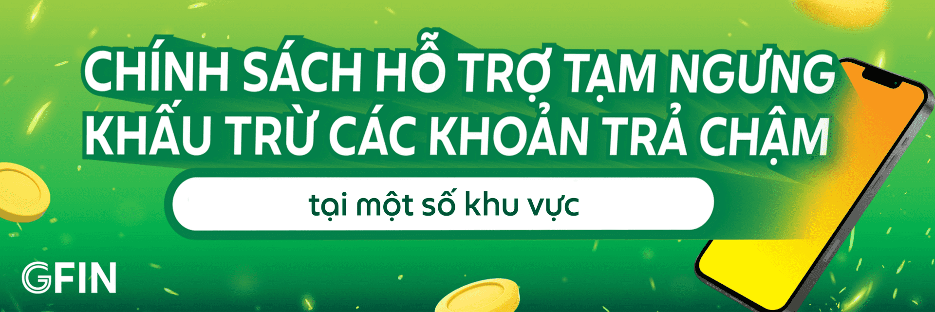 Nhằm đồng hành và sẻ chia với những khó khăn do diễn biến thời tiết phức tạp diễn ra trong thời gian vừa qua, Công ty TNHH GFin Việt Nam (“GFin”) triển khai chính sách tạm ngưng khấu trừ các khoản nghĩa vụ thanh toán của Đối tác với GFin, cụ thể như sau: