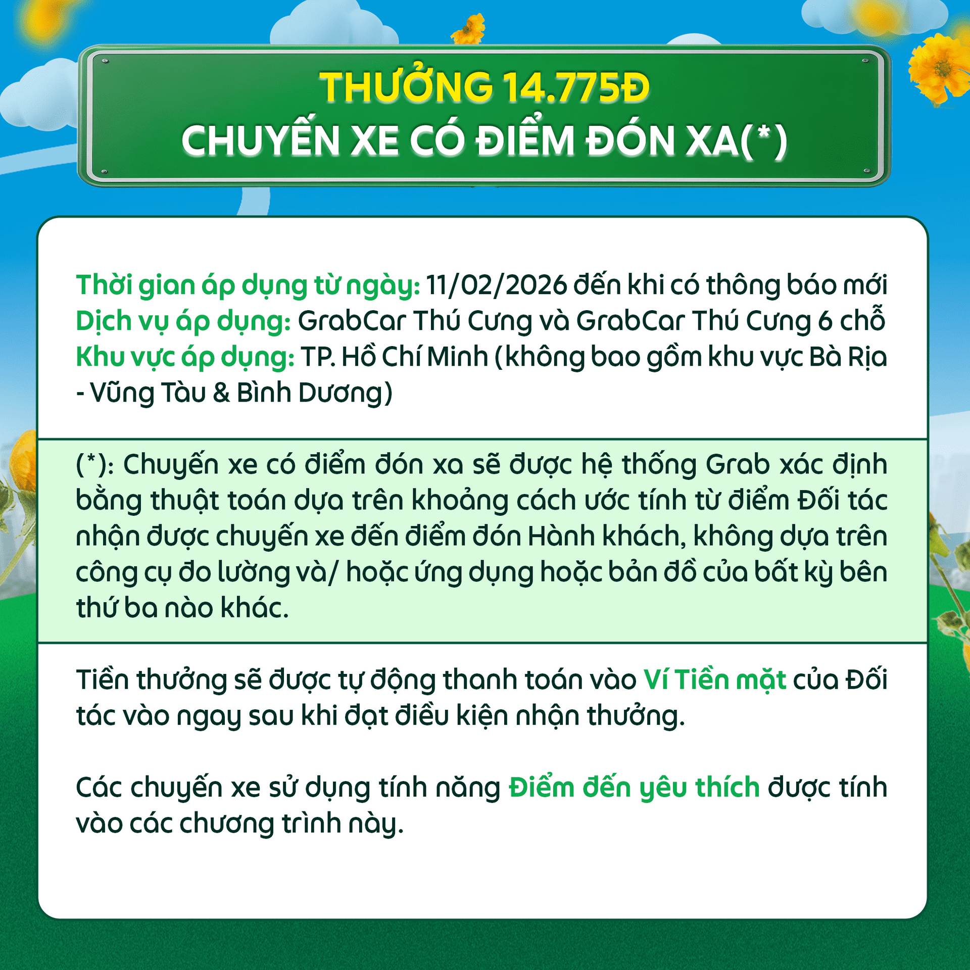 - Các chuyến xe sử dụng tính năng Điểm đến yêu thích sẽ không được tính vào các chương trình này.