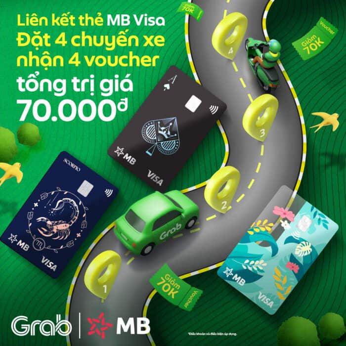 Thông điệp dành cho người dùng lần đầu liên kết thẻ MB Visa vào Grab: nhận 04 ưu đãi GrabBike, GrabCar với tổng giá trị lên đến 70.000đ. Sau đây là “hướng dẫn tiếp nhận thông điệp”:
